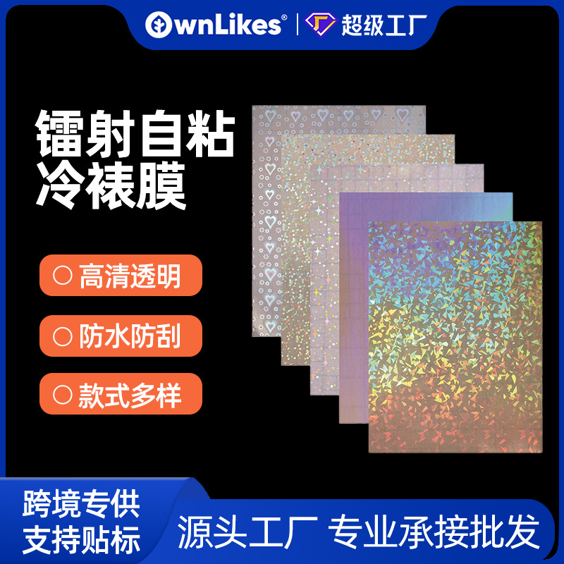 亚马逊爆款冷裱膜镭射a4自粘透明膜DIY全息乙烯基冷层压膜防水