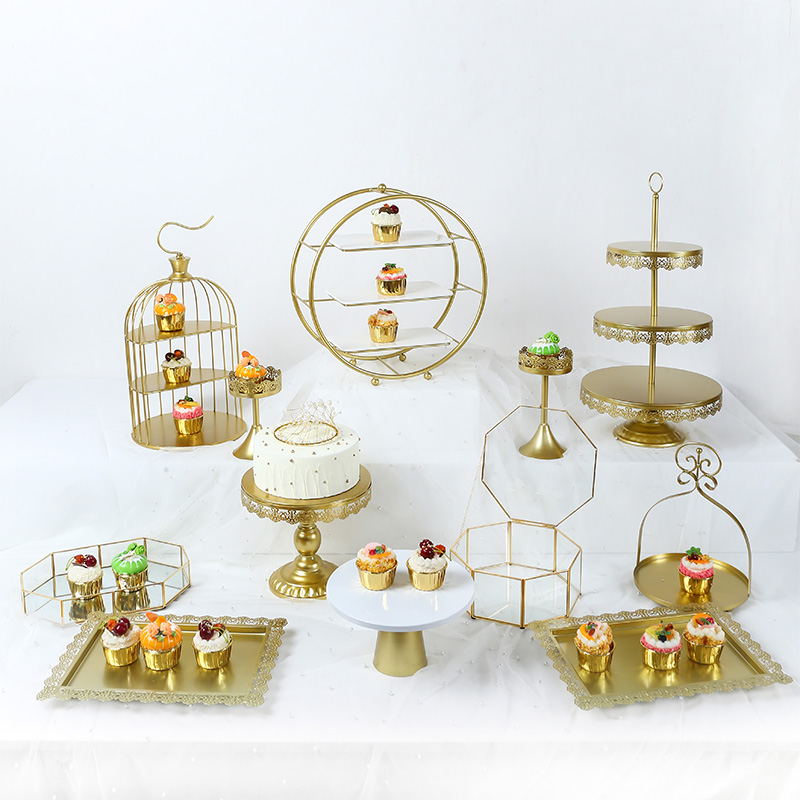レースの辺の長方形のトレー棚の金属のヨーロッパ式のケーキの皿の四角い皿のお菓子の展示の皿の餅は盛んに広がります。