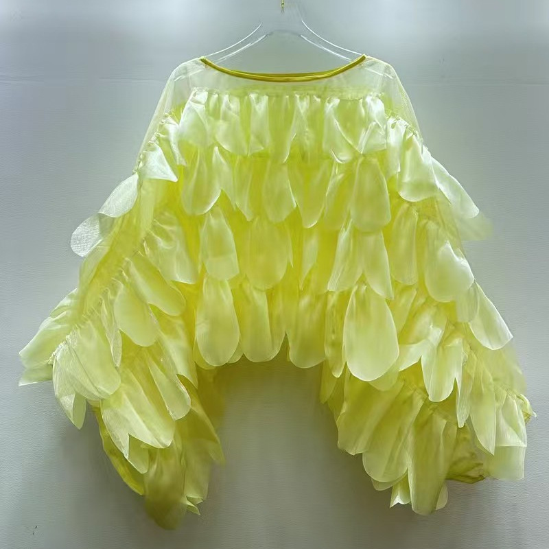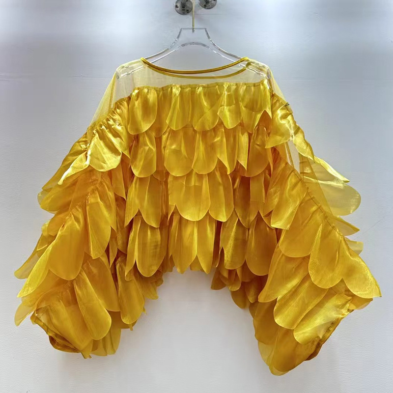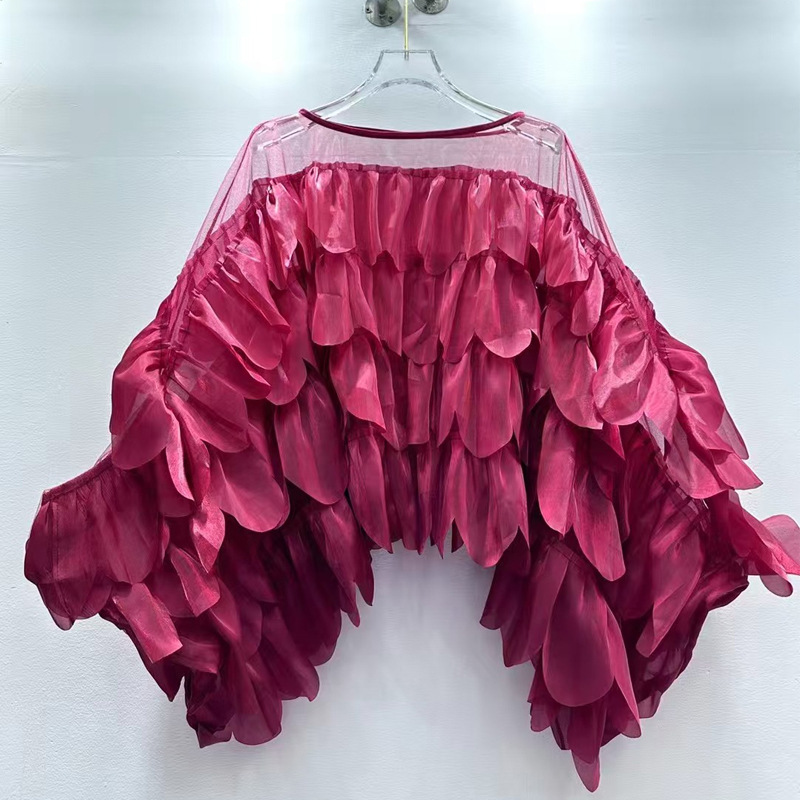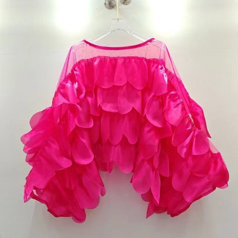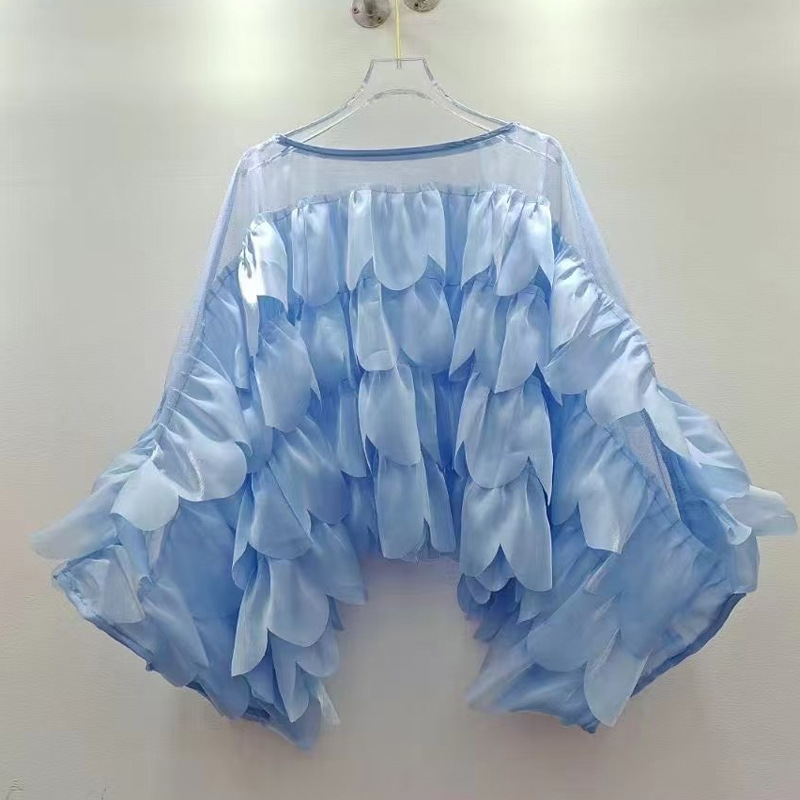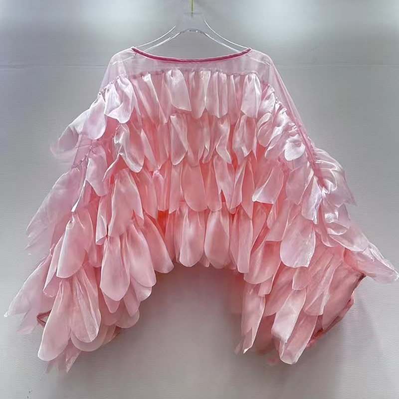 高級洋気重工釘珠亮片立体花シャツ女2024春装新透視網糸フランス上着