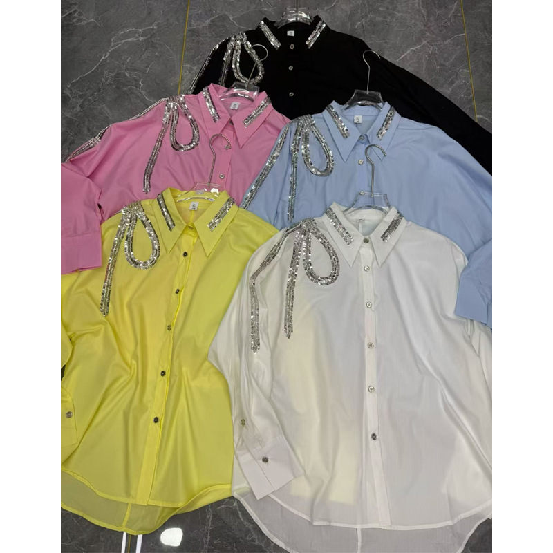 法式设计感重工珠片绣花优雅肩头亮片设计上衣质感温柔高级感衬衫