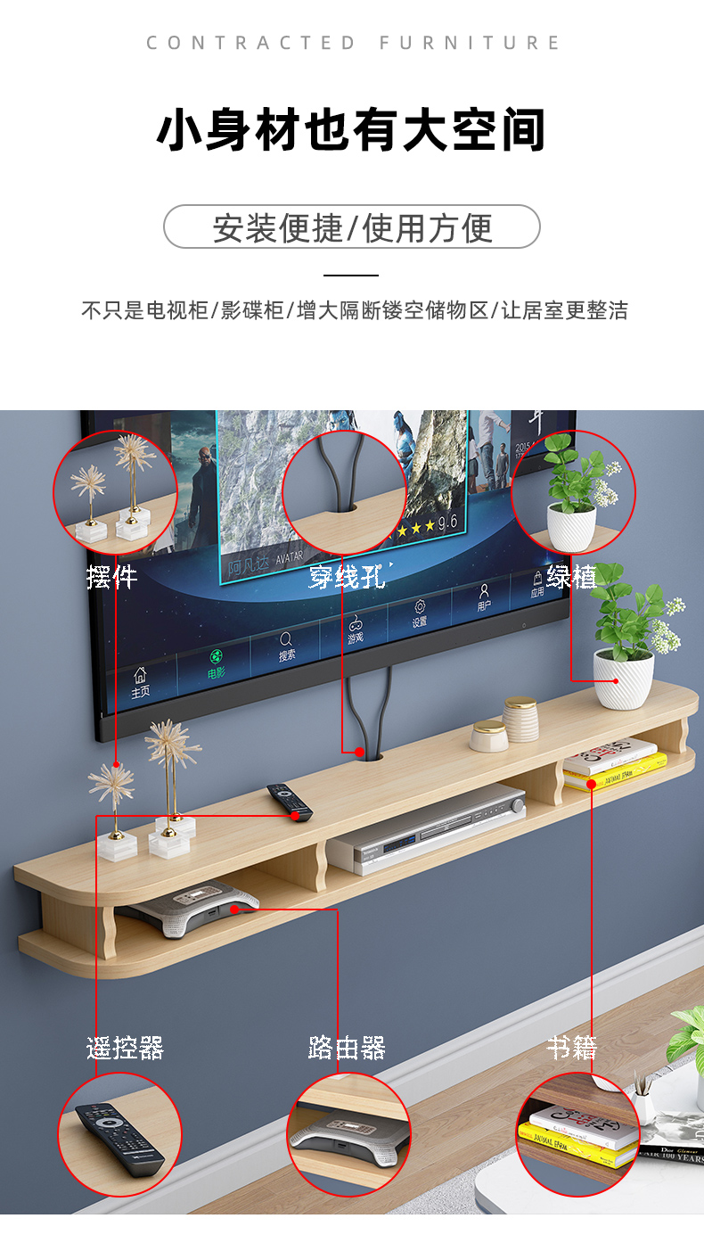 テレビキャビネット壁挂け壁吊り下げ式シンプルモダンシンプルリビングルーム寝室小戸型超狭ミニ吊り下げキャビネット