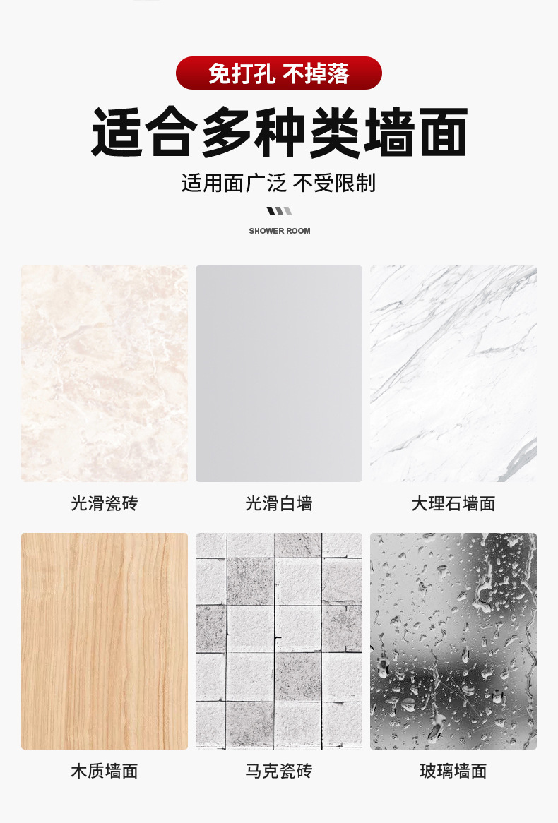 穴あけ不要のシャワーヘッドホルダー、新しいシャワーアクセサリー、釘不要、強力な粘着剤付き、調節可能なヘッド固定器