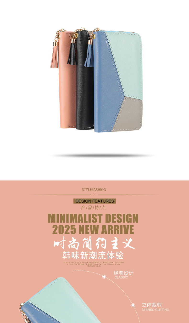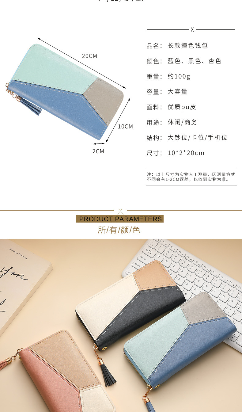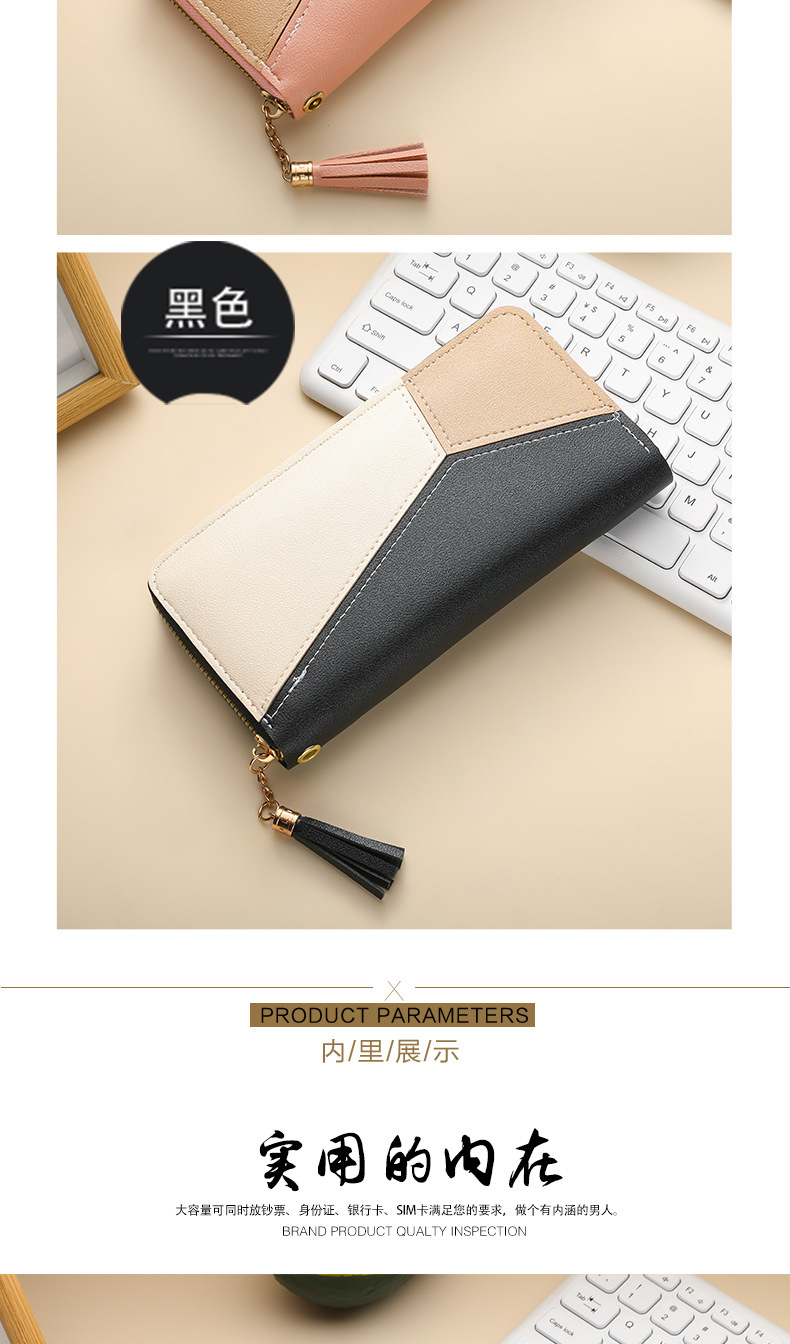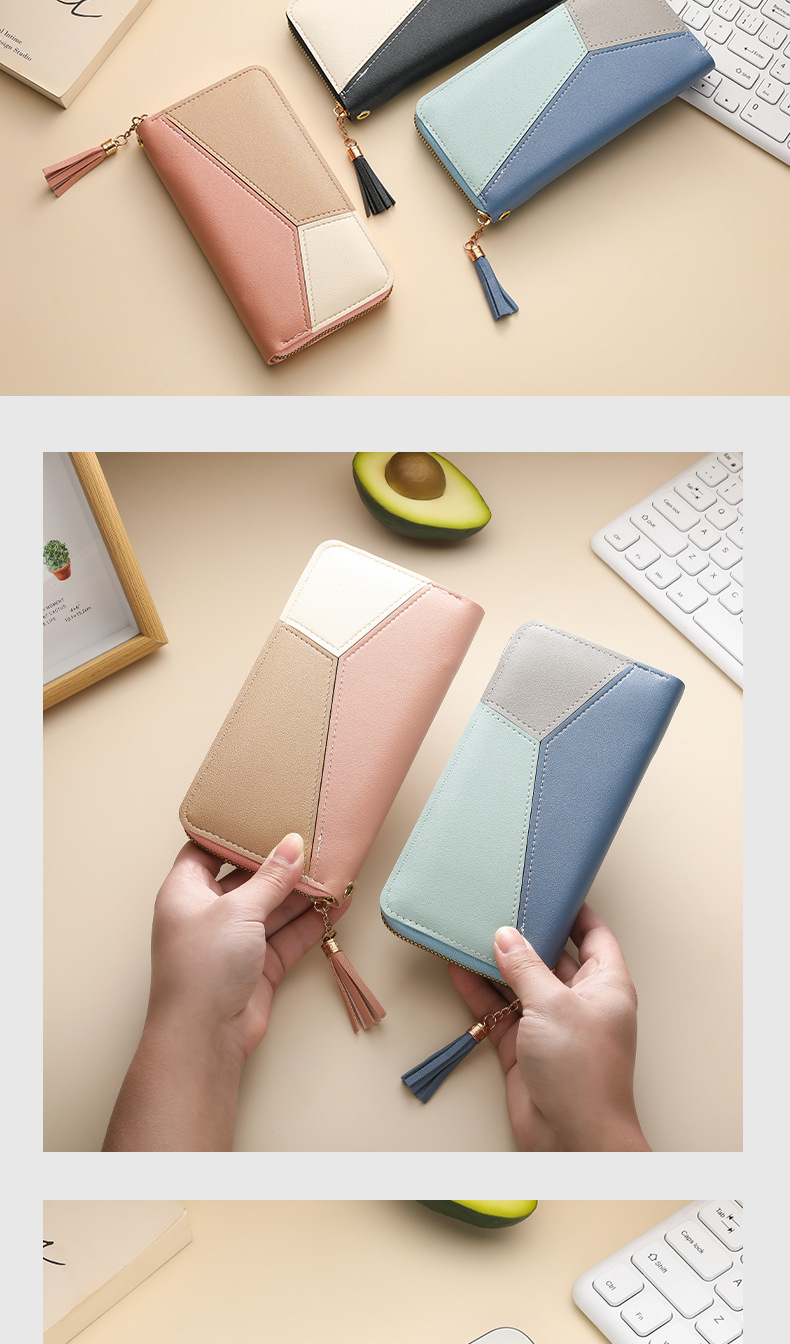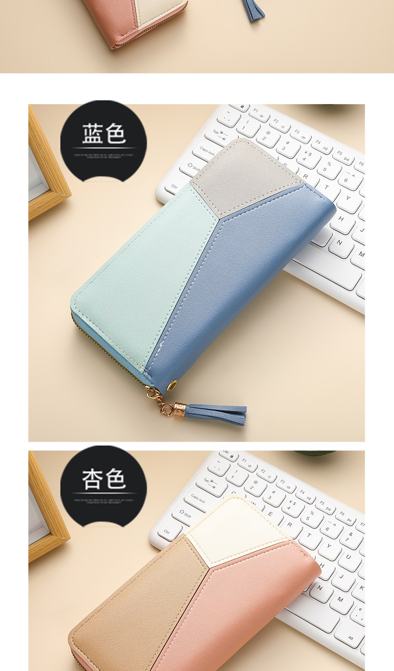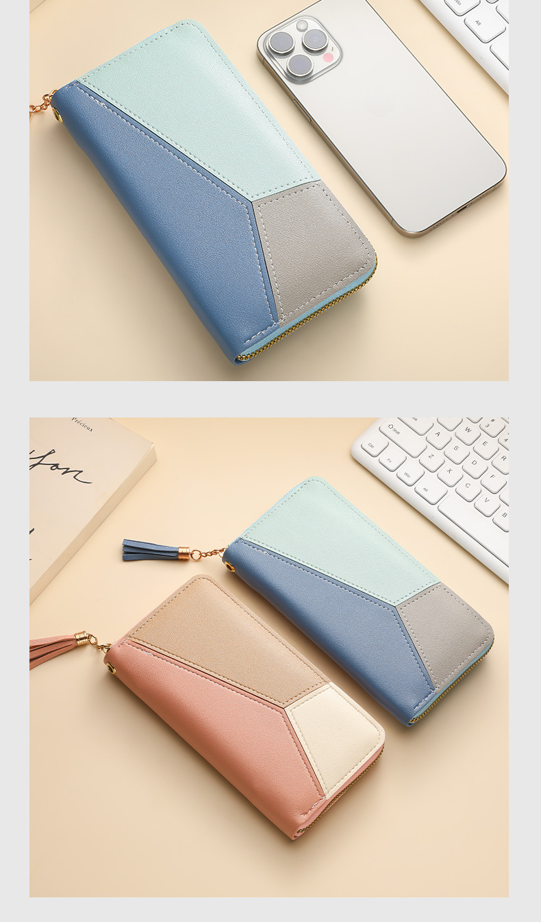 色のつなぎ合わせの長い財布の女性のハンドバッグの女性2025新型ファッション日韓大容量ファスナーの女性