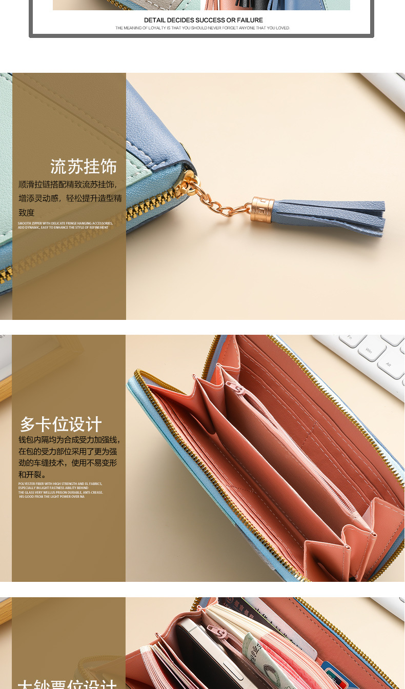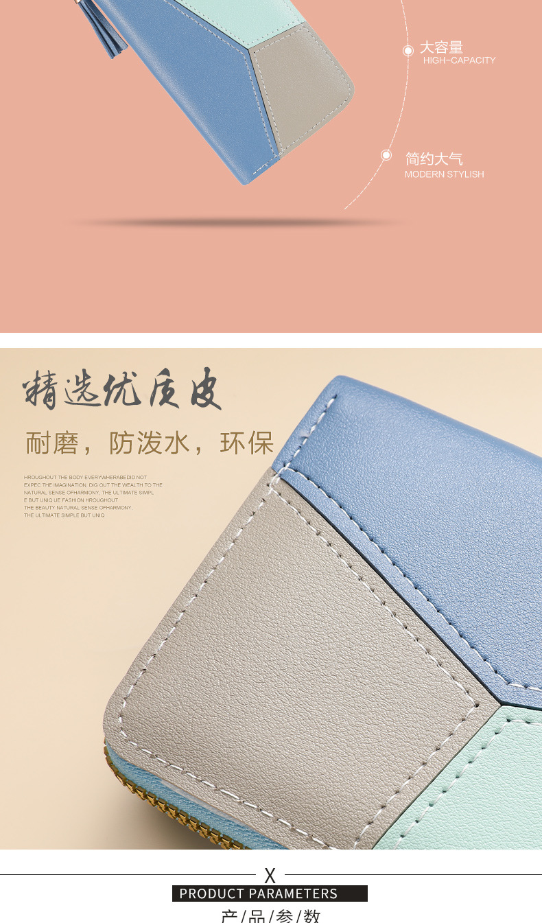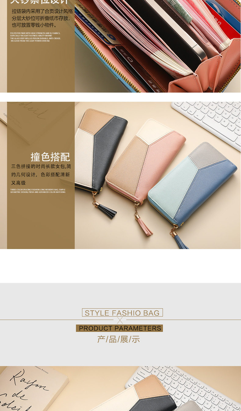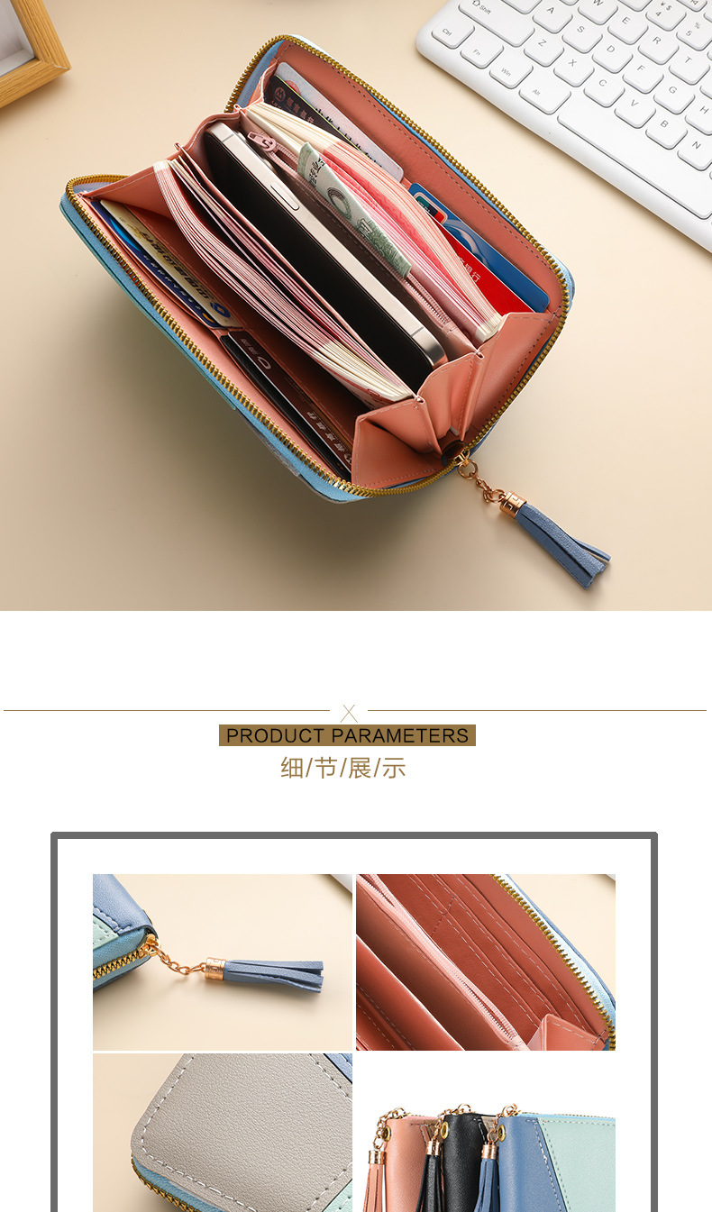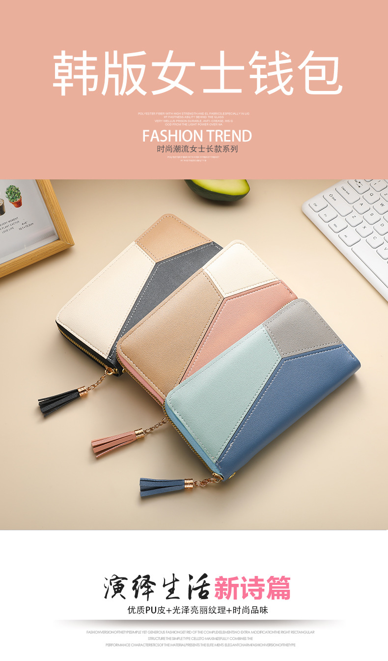 色のつなぎ合わせの長い財布の女性のハンドバッグの女性2025新型ファッション日韓大容量ファスナーの女性