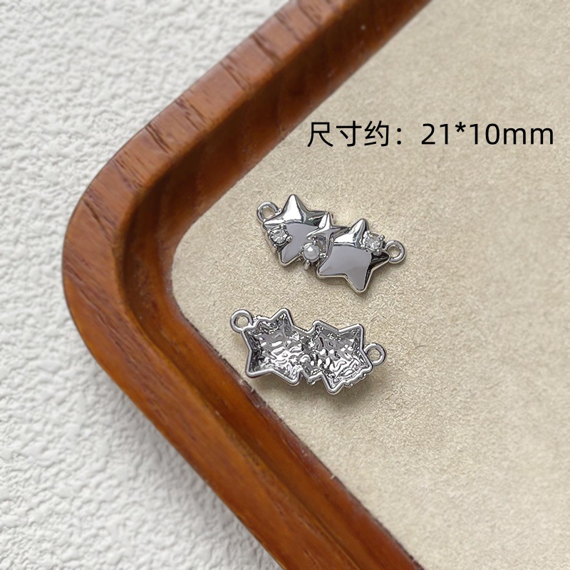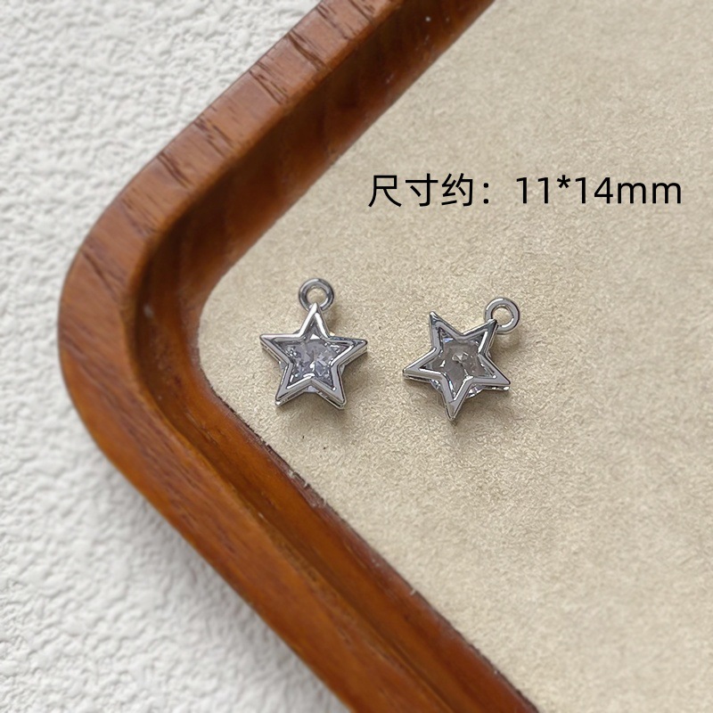 ins风镶嵌锆石多色简约法式星星闭环水滴开口吊坠挂件DIY手工饰品