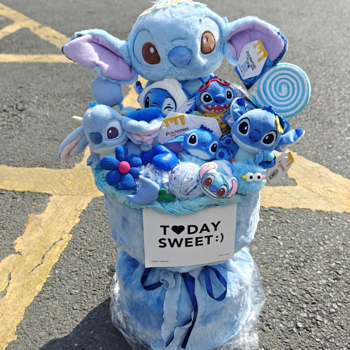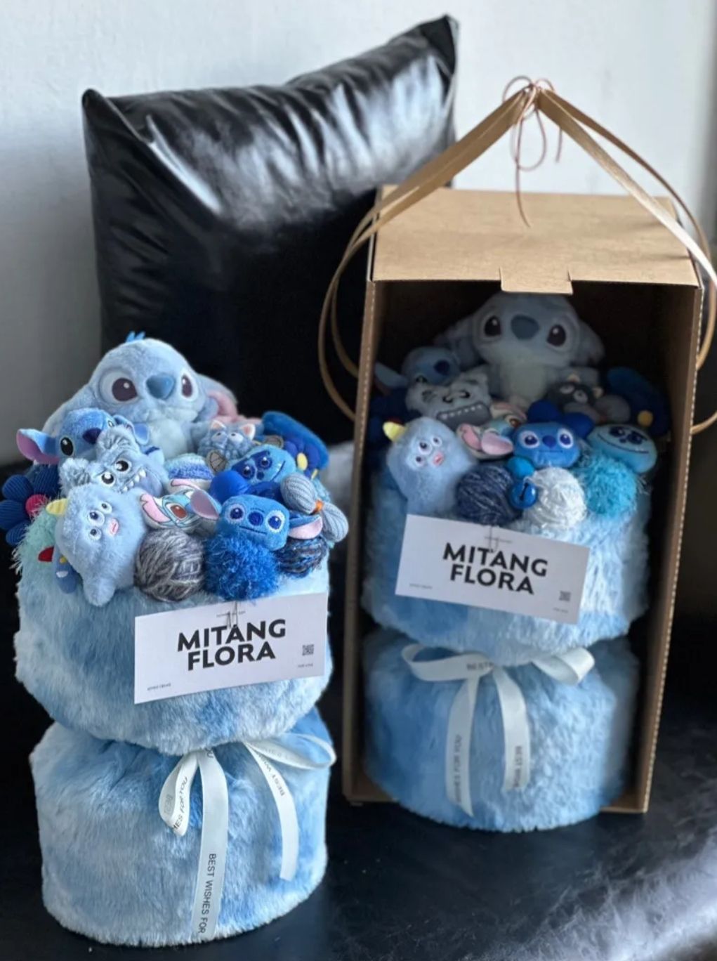スティッチドールブーケ+ギフトバッグ+グリーティングカード【購入可能】,デラックス版ステッチブーケ+ギフトバッグ+グリーティングカード,ピンク + ブルー ステッチ ブーケ + ギフトバッグ + グリーティング カード
