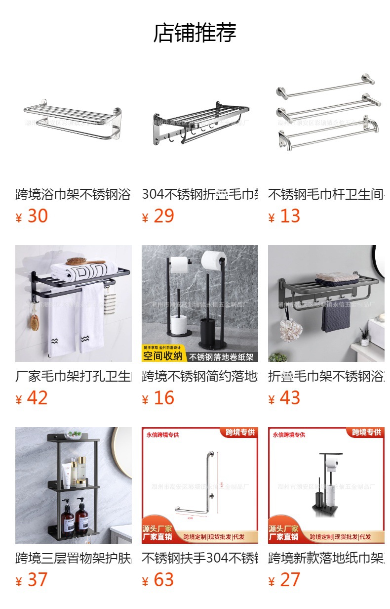 クロスボーダー専用物置棚浴室ストラップタオルバーペーパータオル棚石鹸皿フック髭剃りホルダー浴室セット