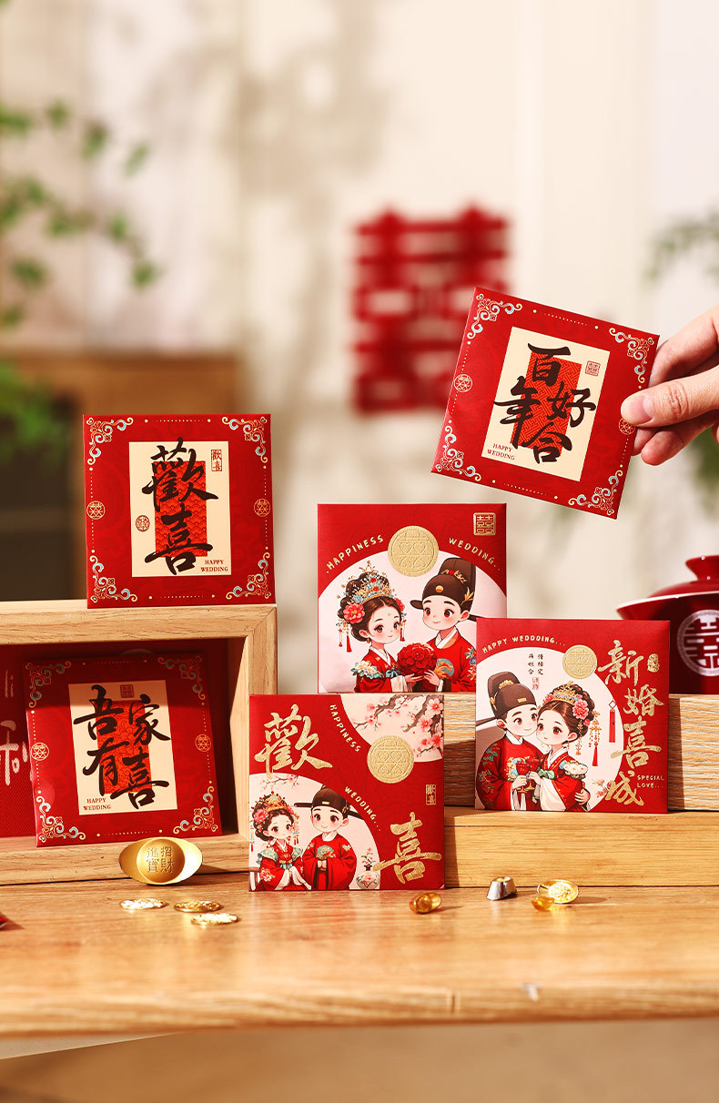 結婚式の引き出物用小紅包、ドアを塞ぐ小道具、香港風小紅包、開店祝い、結婚祝いの文字入り、クリエイティブな結婚式の紅包