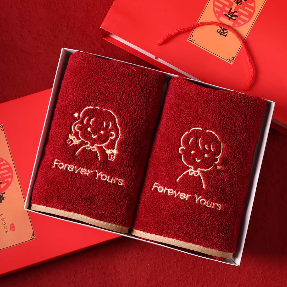 结婚红色毛巾一对婚庆喜女方伴手回礼新婚礼盒装婚礼陪嫁用品批发