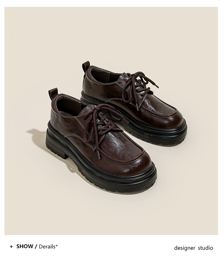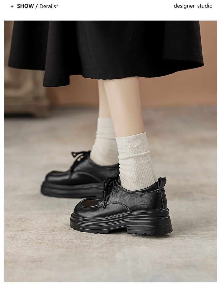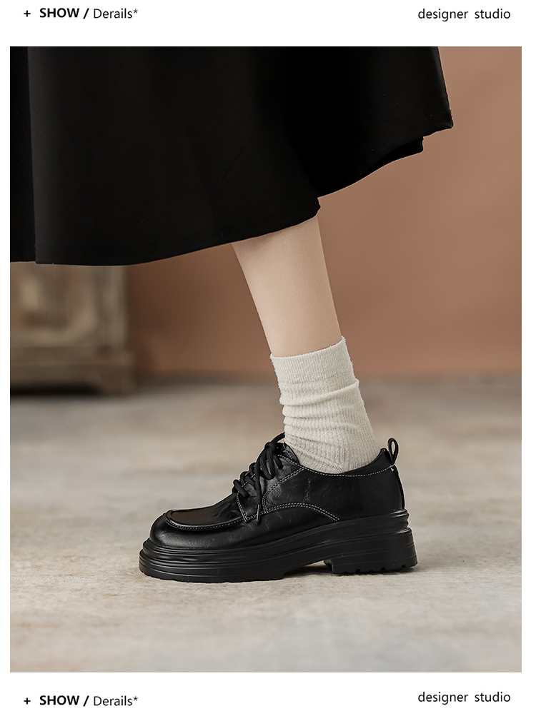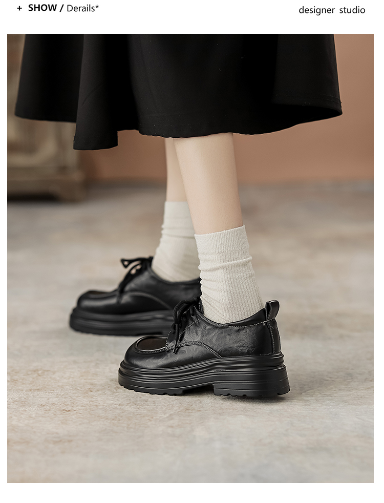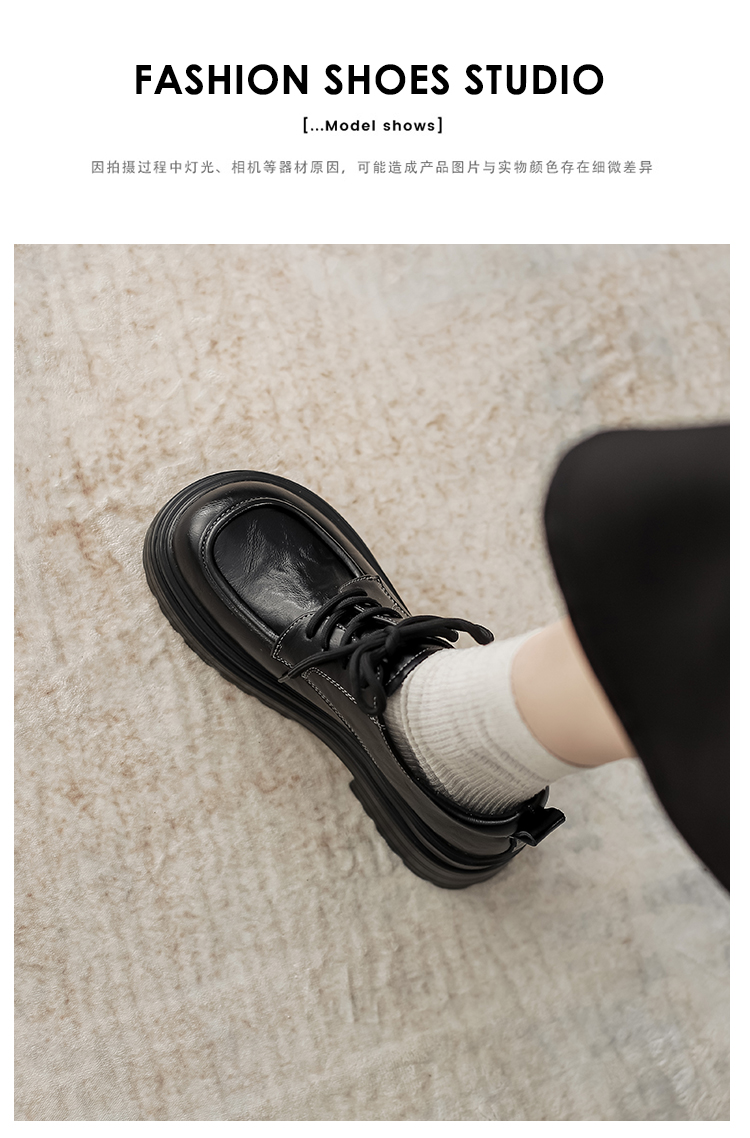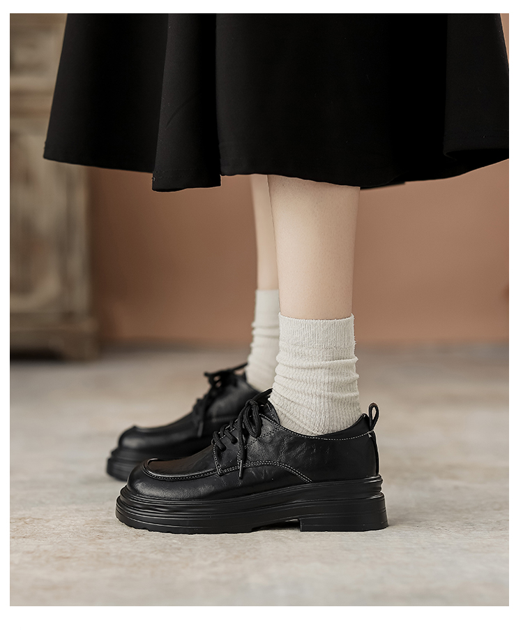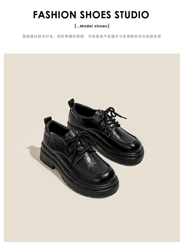 本革の黒い小さい靴の女性の英倫風2025春の新型の太ヒールの靴は高くなります。