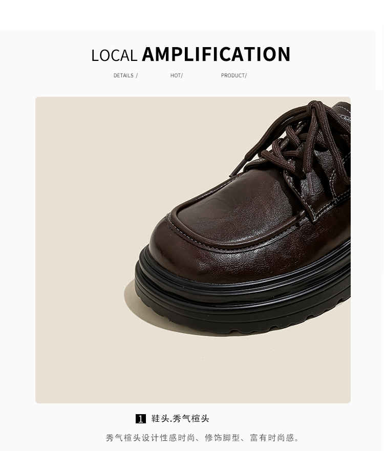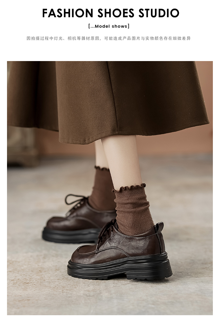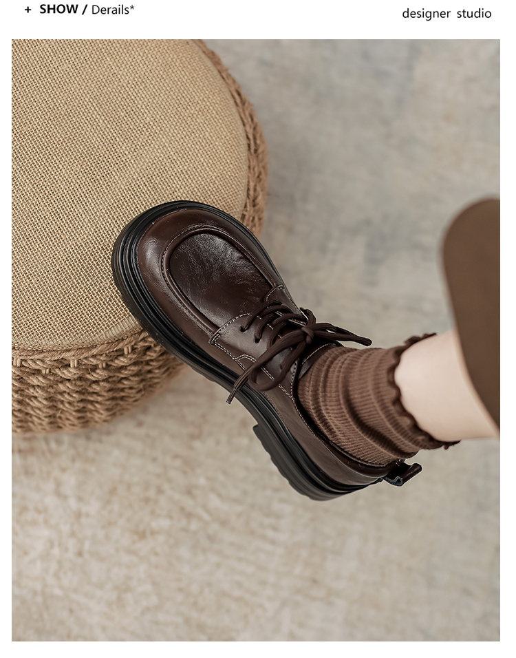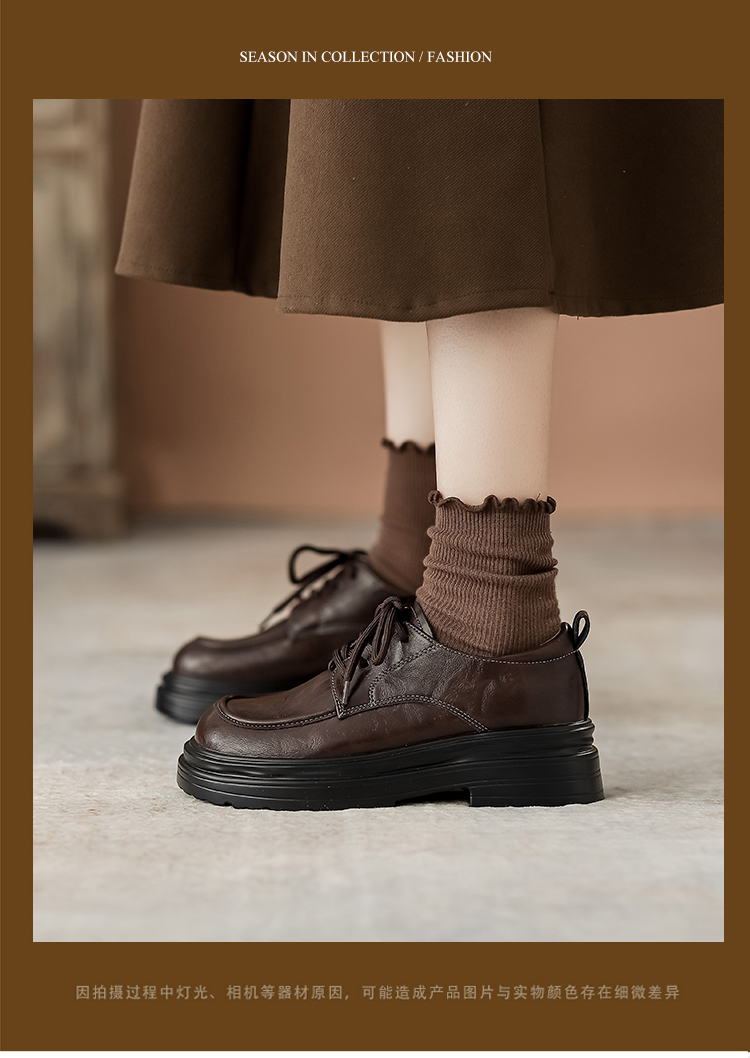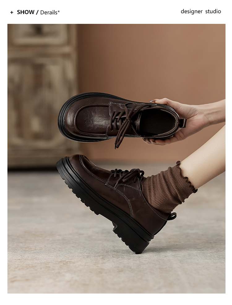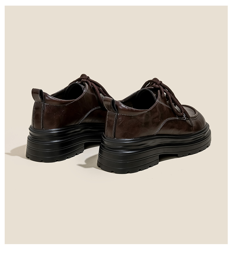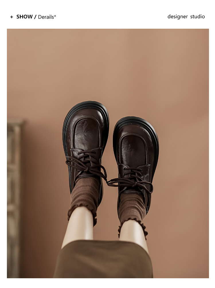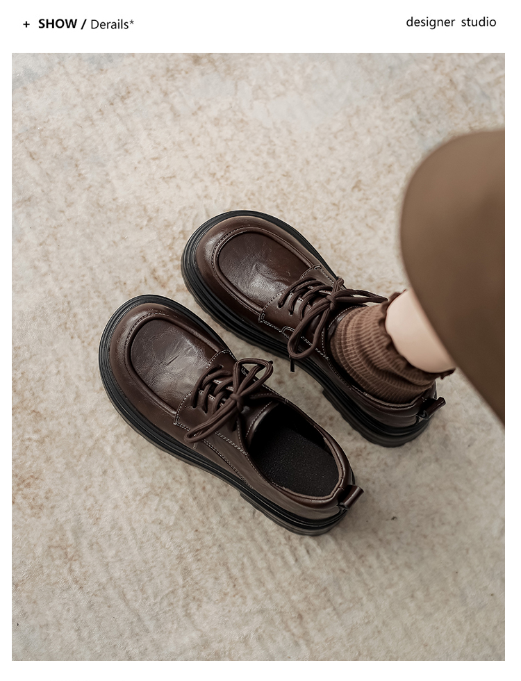 本革の黒い小さい靴の女性の英倫風2025春の新型の太ヒールの靴は高くなります。