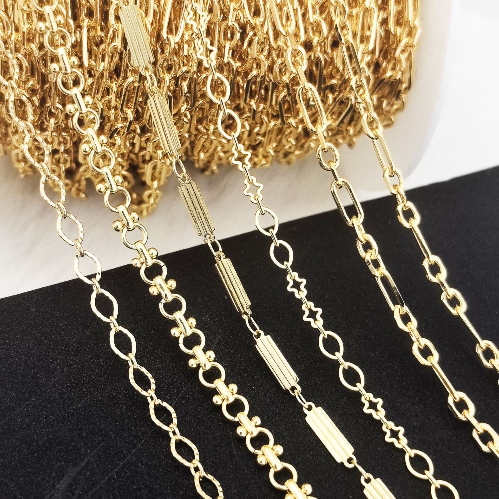 ステンレスハンドチェーン18k真金メッキ星愛チェーン菱形チェーン女性チェーンDIYアクセサリーチェーン