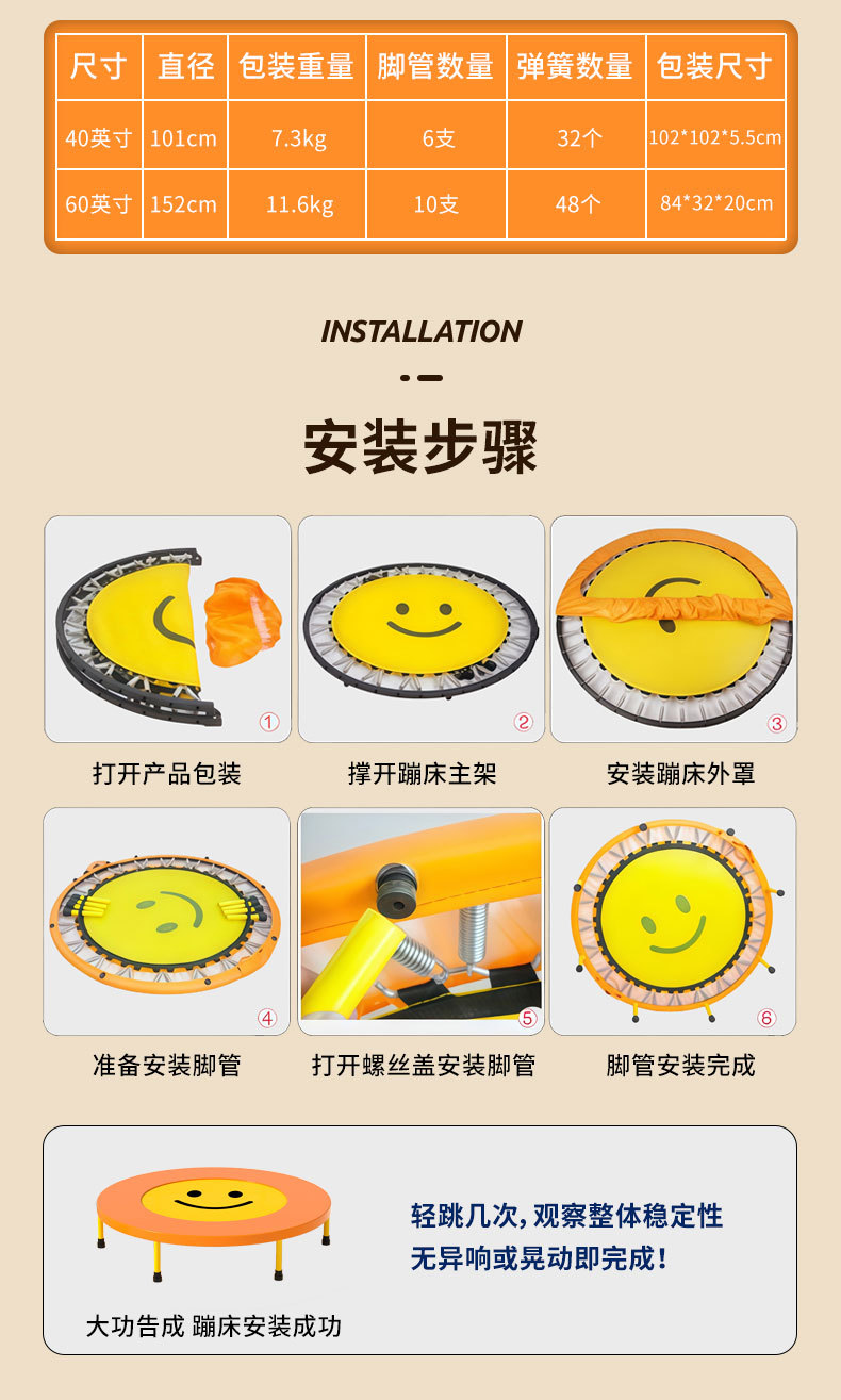 天鑫トランポリン家庭用フィットネス成人児童スプリング室内外黄色笑顔カバートランポリンクロスボーダーベッド