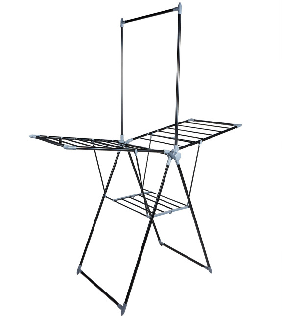 新しいハンガーは折り畳み可能な物干し棒をつなぎ合わせて伸縮可能で、ハンガーを取り付けない家庭用室内床置きタオルラック