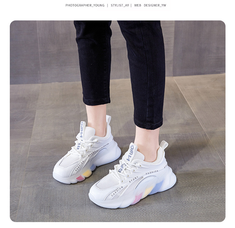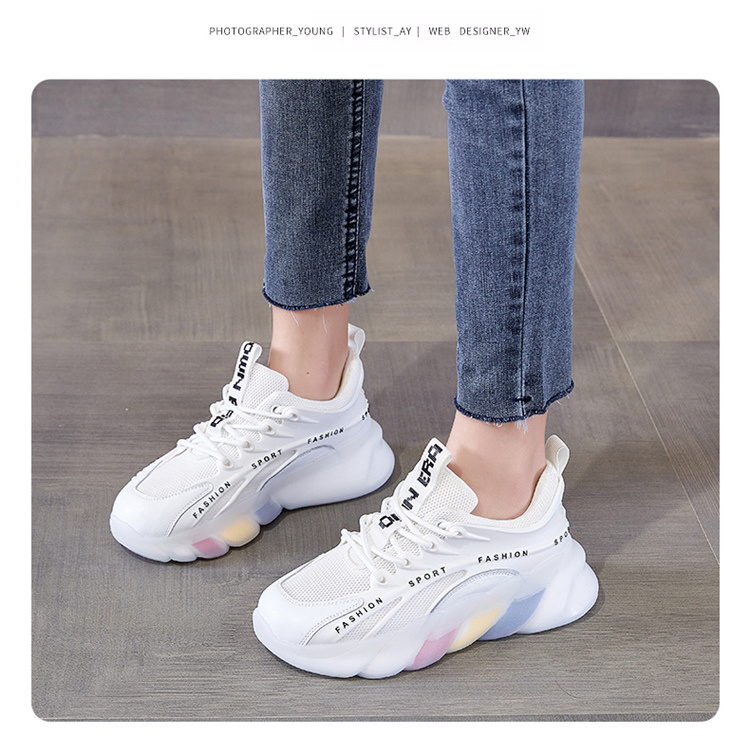 スポーツシューズの女性モデル2025の新しい春の起爆金は、女性の靴の柔らかい底のお父さんの靴の白い靴の女性のカジュアルシューズに合わせている