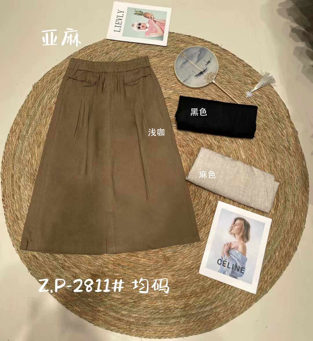 Zp2811日系ゆるい亜麻スカート高腰a字スカート2025新型夏服隠れ肉痩せスカート女装