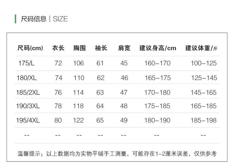 サイズ 175/96A,180/100A,185/104A,190/100A