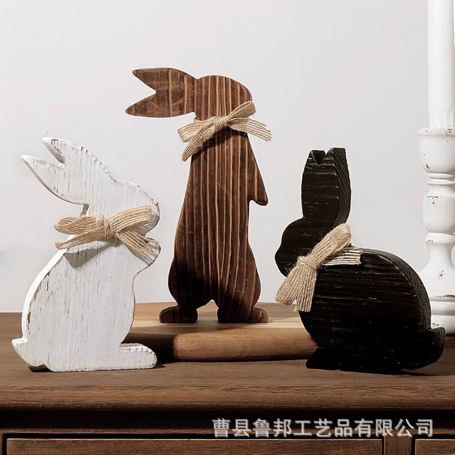 新商品のイースターのウサギの装飾の木の置物の3つは層のトレーを詰めて農舎の祝日の実木の置物を飾ります。