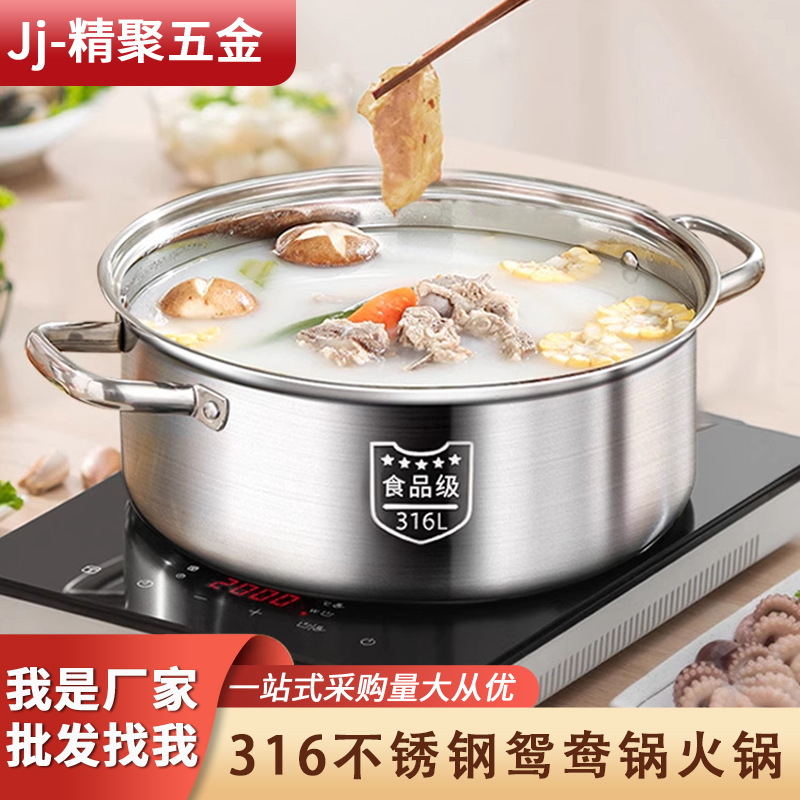 316ステンレス特厚オシドリ鍋高温清湯鍋家庭用蓋付き大容量屋外鍋しゃぶしゃぶ鍋