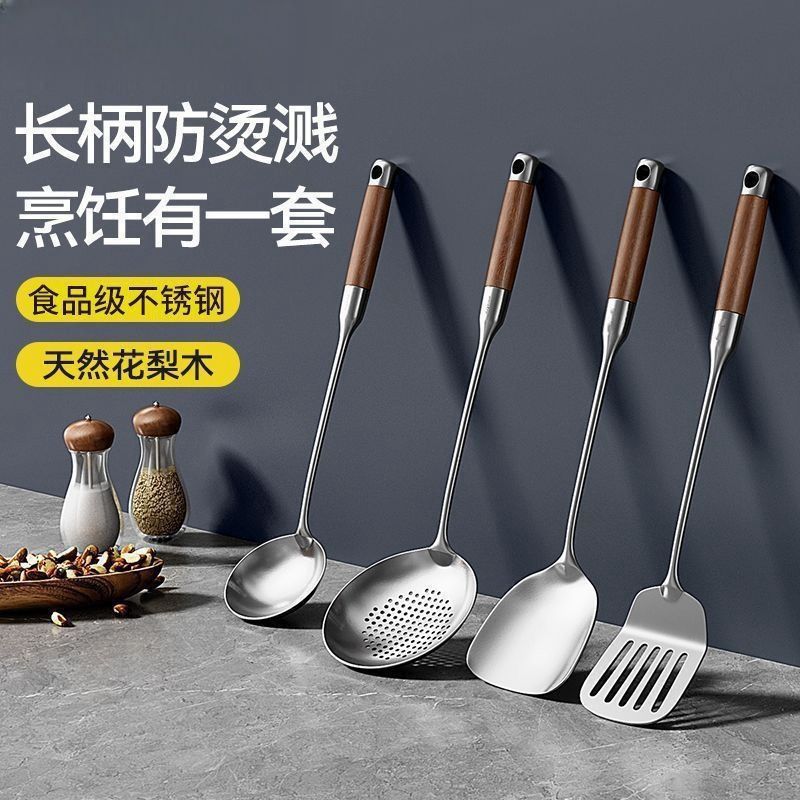 厚みのある家庭用スパチュラ、ステンレス製のログハンドル、キッチン用品、調理用スパチュラ、スープスプーン、スパチュラセット