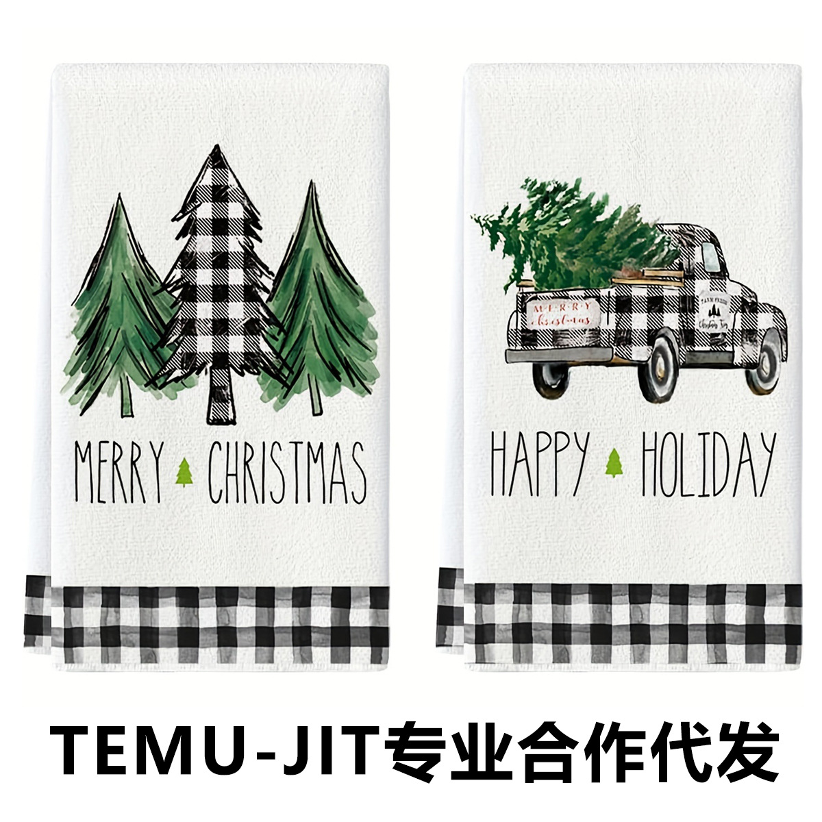 JIT代発クリスマスタオルトラッククリスマスツリー格子プリントタオル皿洗いタオルキッチン装飾国境を越えたタオル