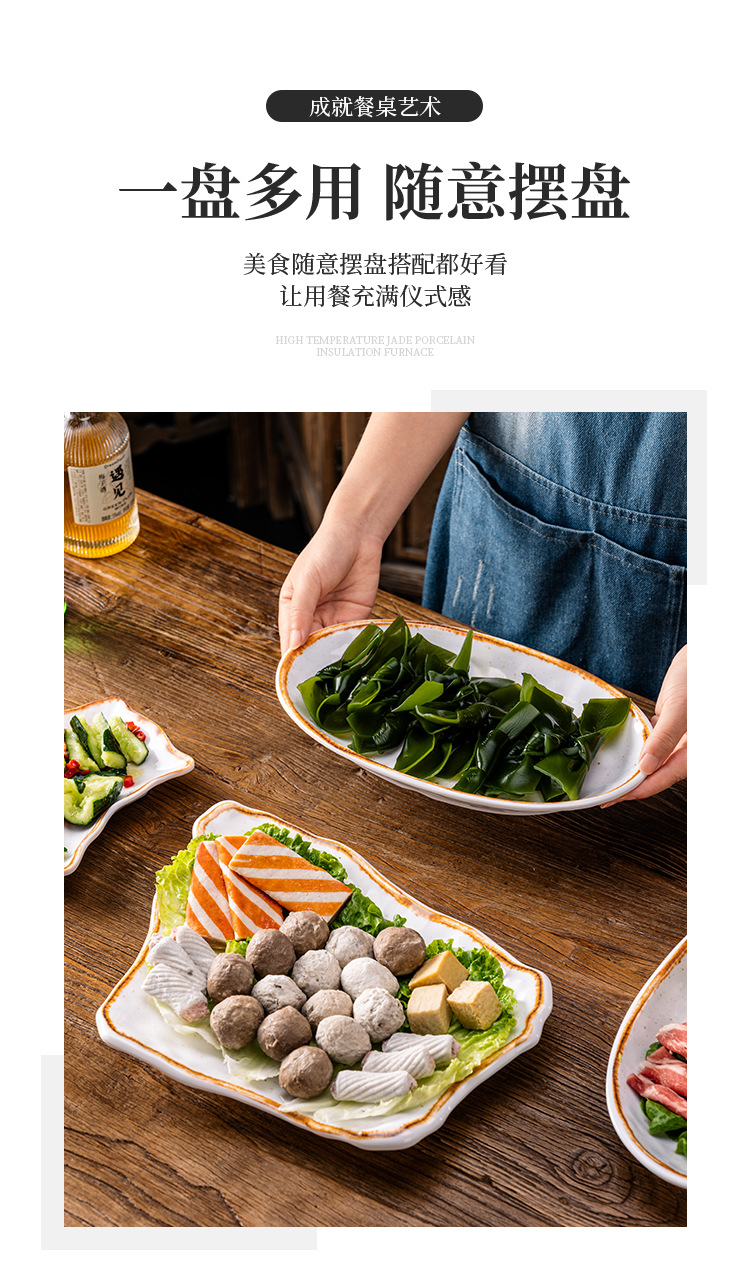 中国風陶磁プレートプレートホテルレストラン厚手展示プレートビュッフェお菓子焼肉皿