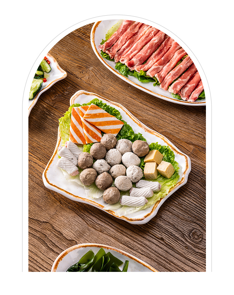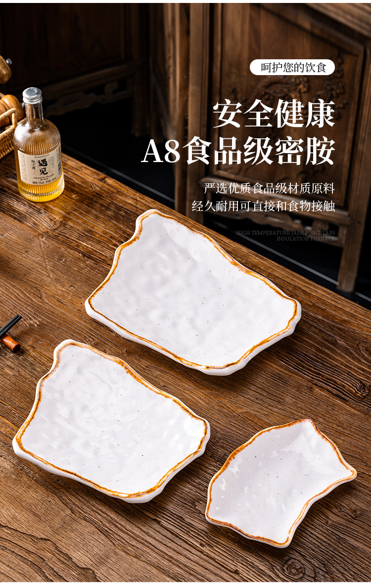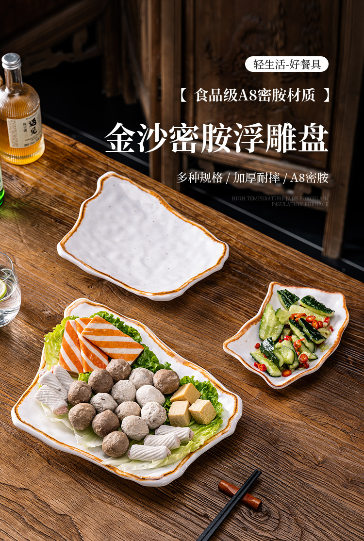 A 8メラミン創意長方形皿深皿料理皿は磁器鍋食器の業務用異形皿魚皿に似せています。