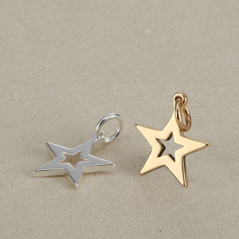 14k金diyアクセサリー部品材料包立体星ペンダント子イヤリングブレスレット五角星ネックレス小ペンダント