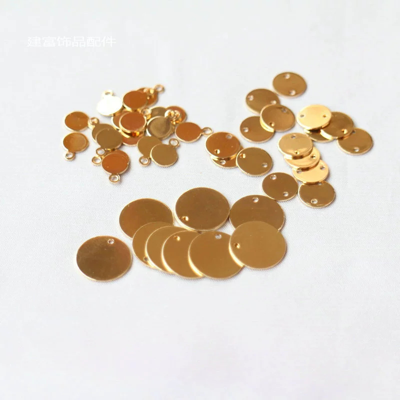 手作り diy ジュエリー材料パッケージ 14 K ゴールドディスクペンダント色保持イヤリングネックレスブレスレットシングルとダブルホールラウンドペンダント