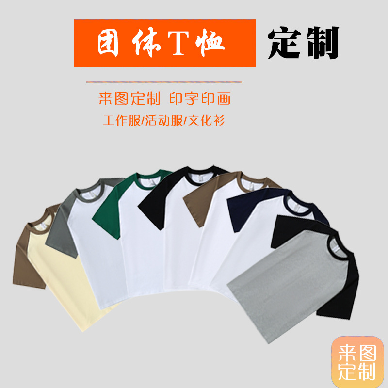 カスタマイズされた230G純綿ラグラン半袖コントラストカラートレンディなラウンドネックファッショナブルで快適な図面加工グループ作業服
