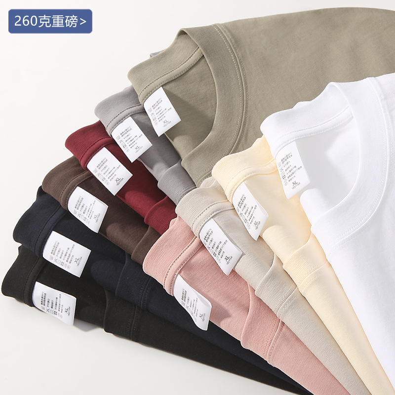 260グラムの幅の重いポンドの純綿のtシャツの涼感の男女の同項の肩のゆったりしている半袖のカップルの春の夏の純色のt