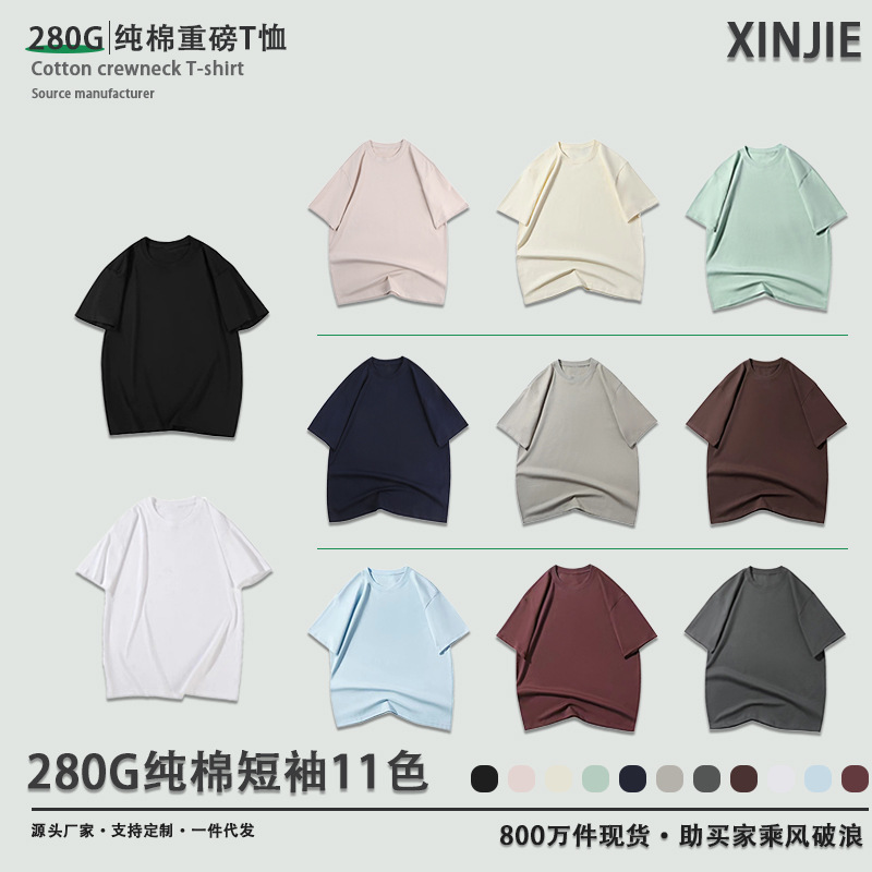 新品230グラム重ポンド純綿肩突き半袖tシャツ男女潮牌港風ゆるい色合わせ丸襟