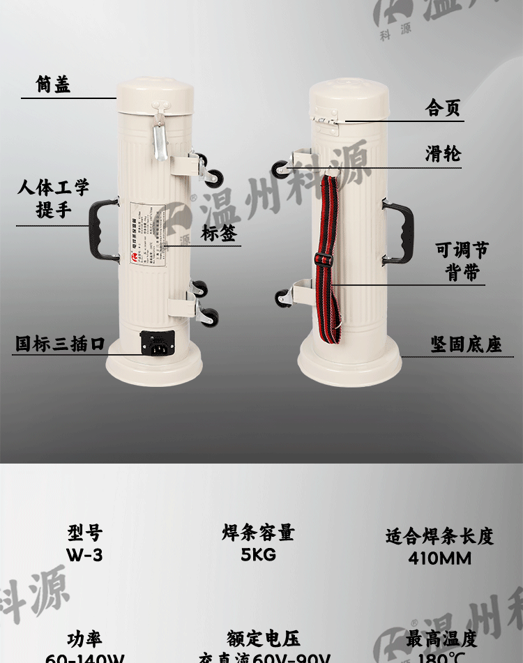 ポータブル5kg電気溶接棒保温筒W-3横式縦型保温桶溶接材保温桶60-90v科源