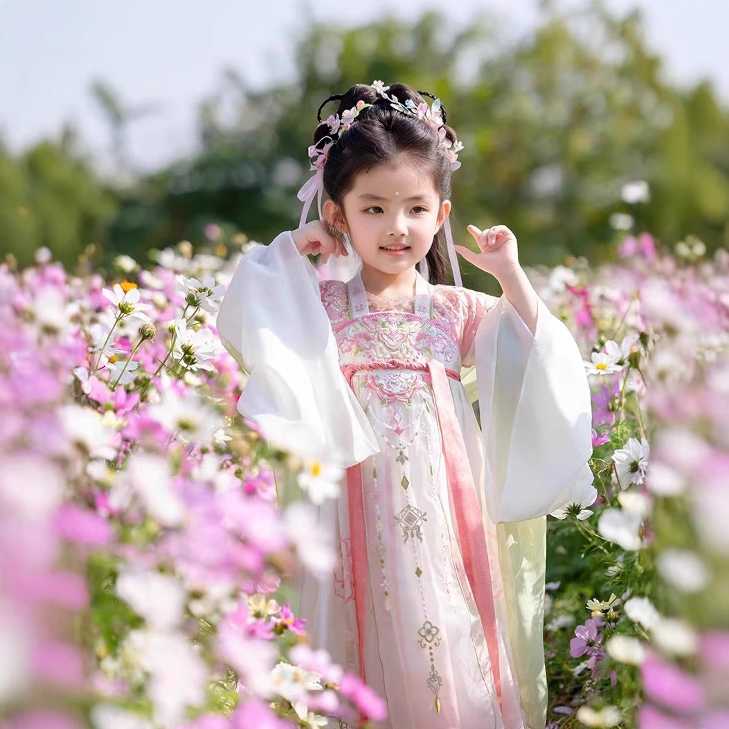 2025 新しい女の子韓服子供のスーパー妖精古代衣装唐装古代スタイルの花の女神ドレス女の子スーツ夏スタイル