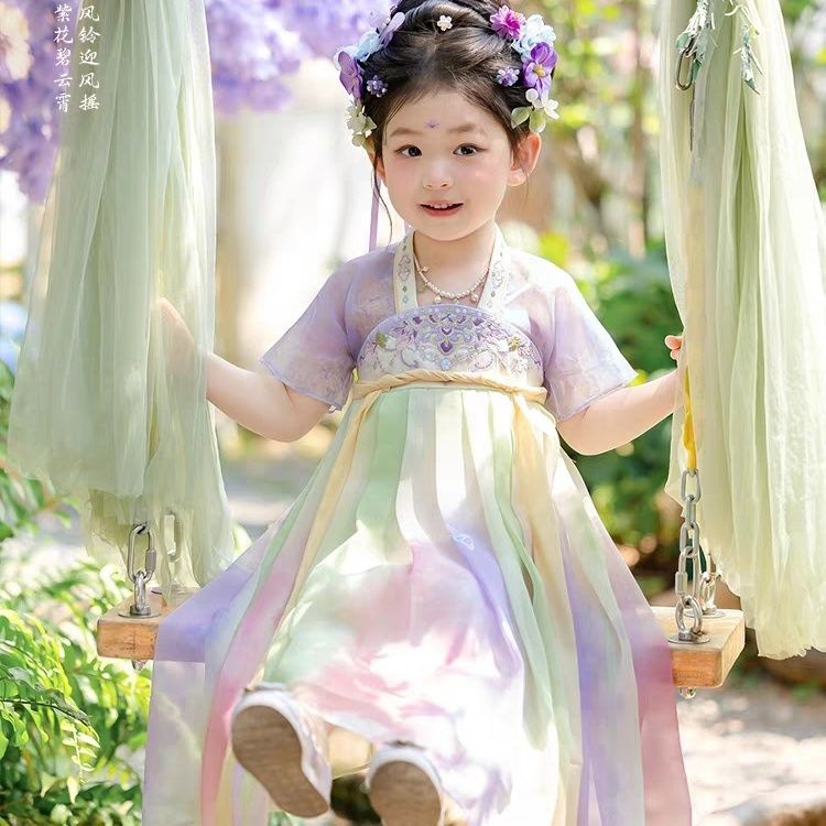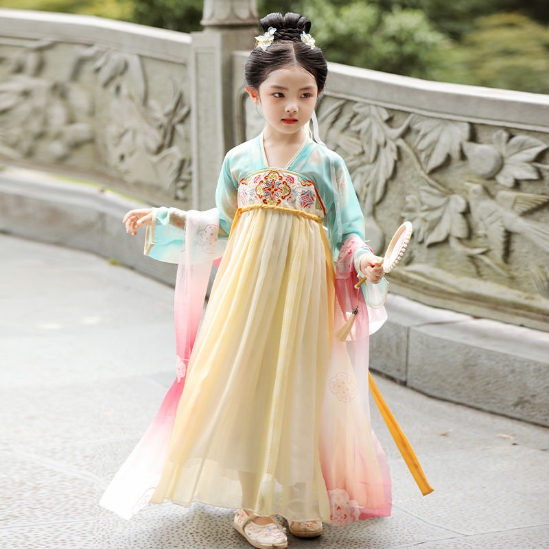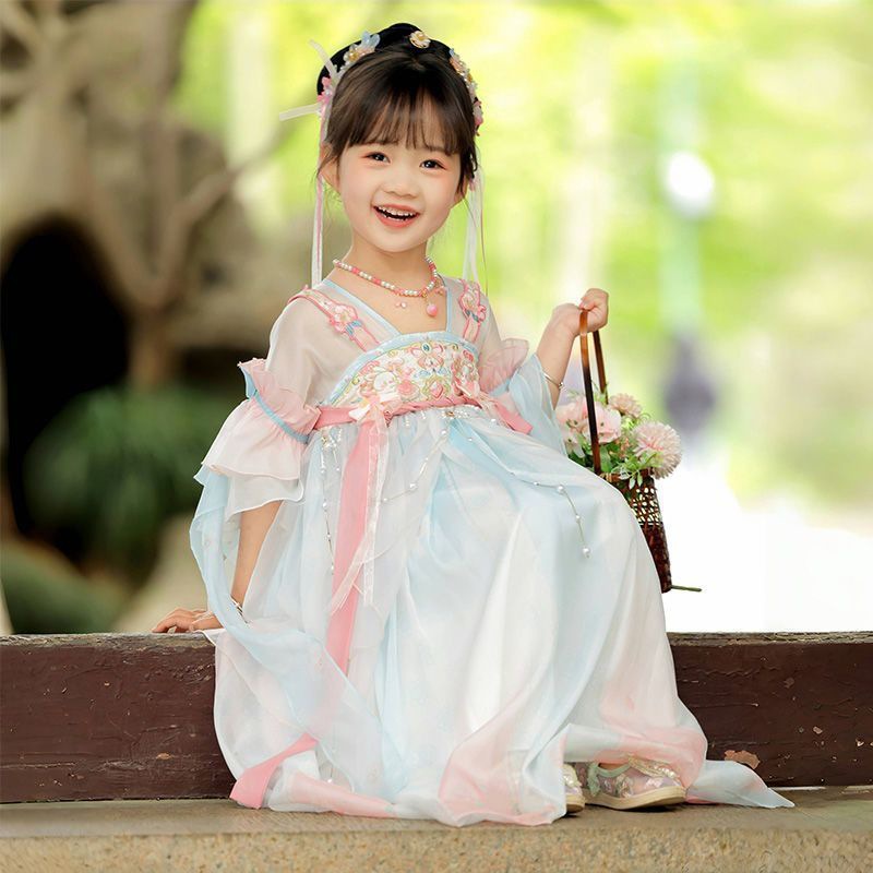 漢服女の子 2025 新しい子供の夏服古代スタイルスーパー妖精スカートプリンセス唐装パフォーマンス服リトルプリンセス