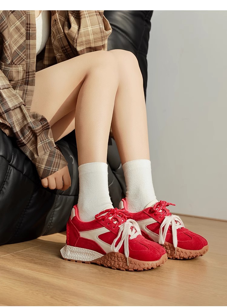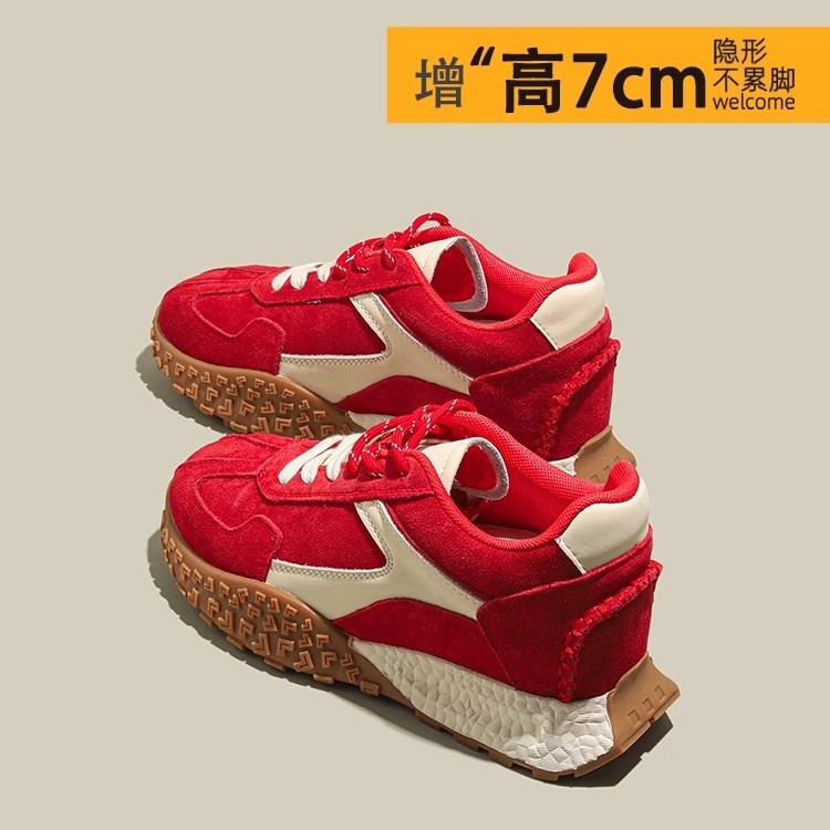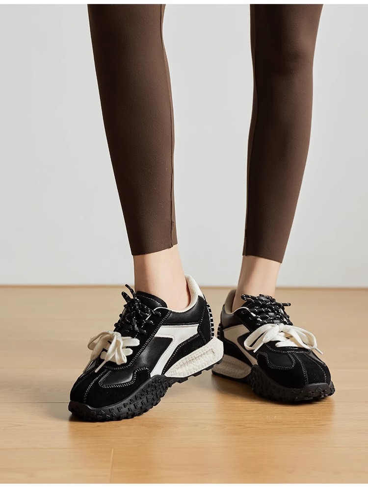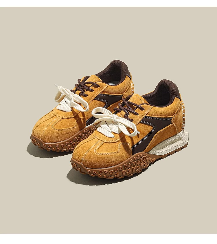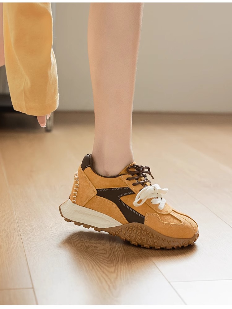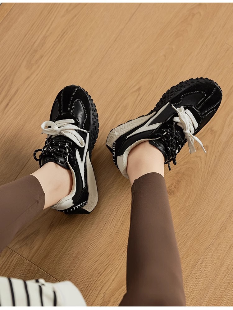 牛革版 ~ 小柄な厚い底の中で高くなった阿甘徳訓靴女性運動レジャー2025新型春板靴