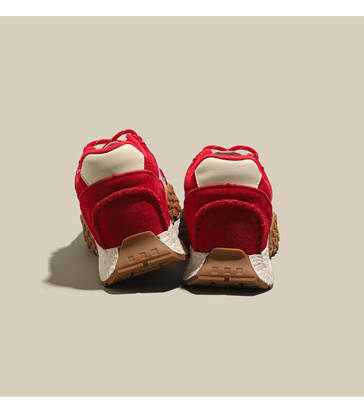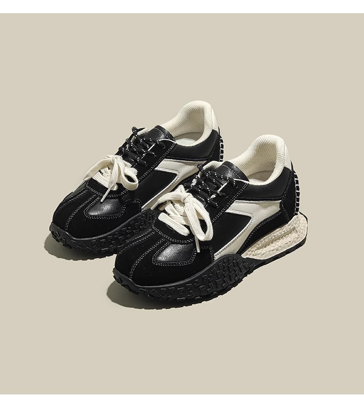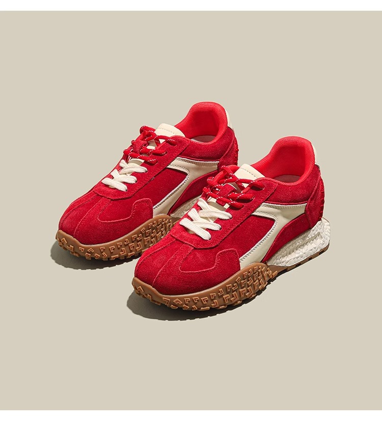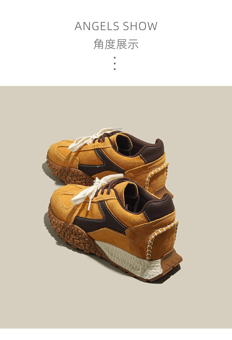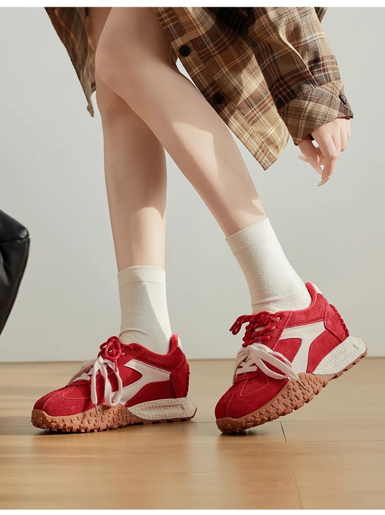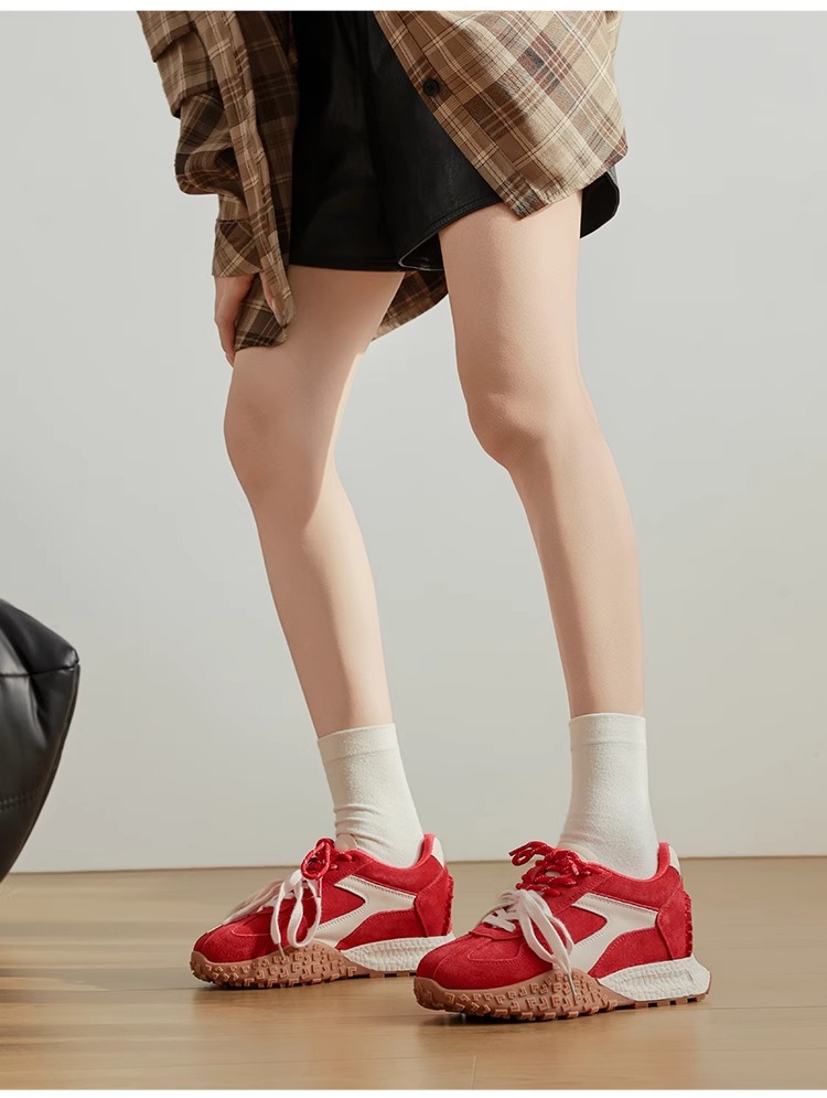 牛革版 ~ 小柄な厚い底の中で高くなった阿甘徳訓靴女性運動レジャー2025新型春板靴