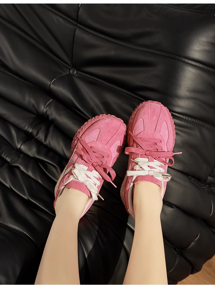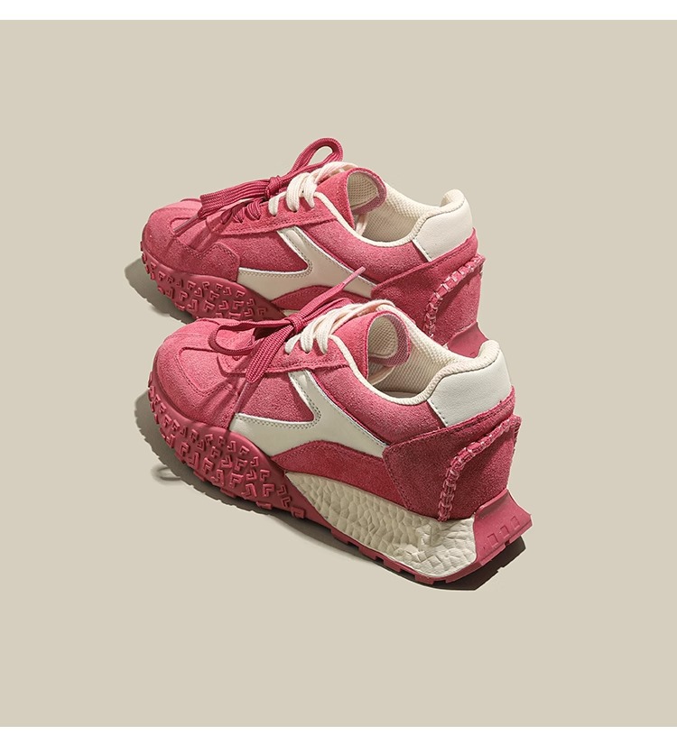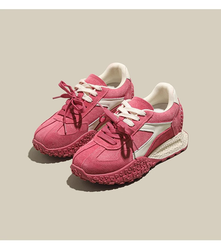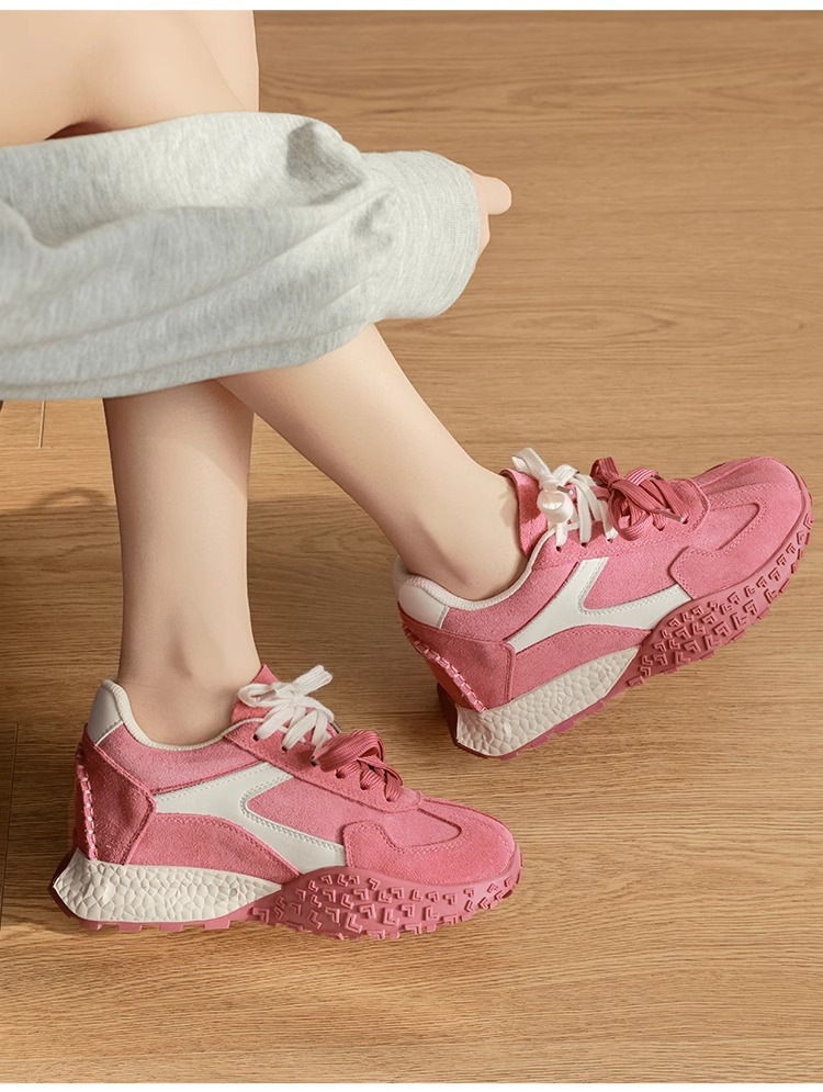 ピンク本革厚底インナー強化道徳トレーニングシューズ女性のための 2025 春と秋の新作カレッジスタイルカジュアルスポーツフォレストシューズ