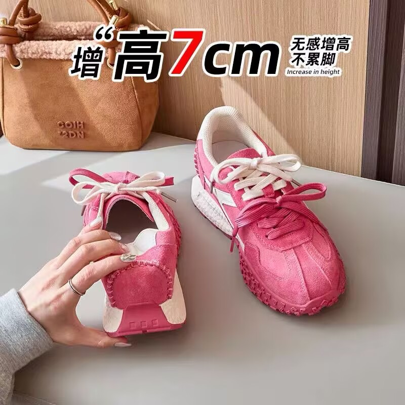 软皮版网红7cm足弓支撑~内增高爆米花厚底休闲运动德训鞋女阿甘鞋