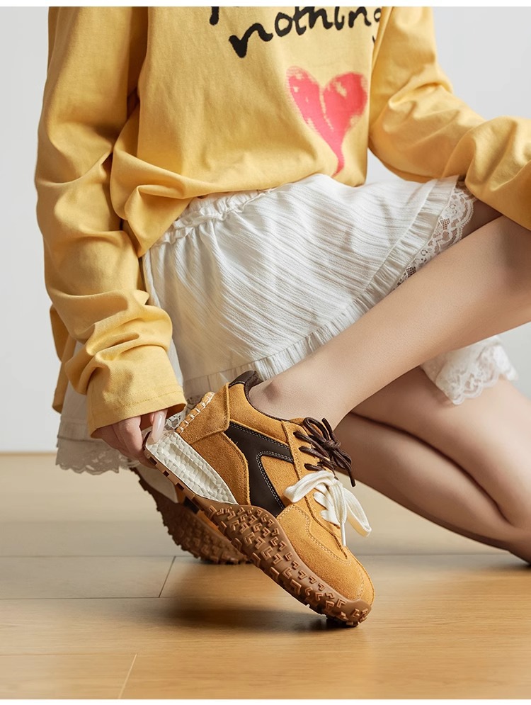 2024年秋新作 韓国風 通気性抜群 万能コーデ 脚細見え カジュアル レトロ スニーカー 厚底 ソフトレザー ダッドシューズ レディース