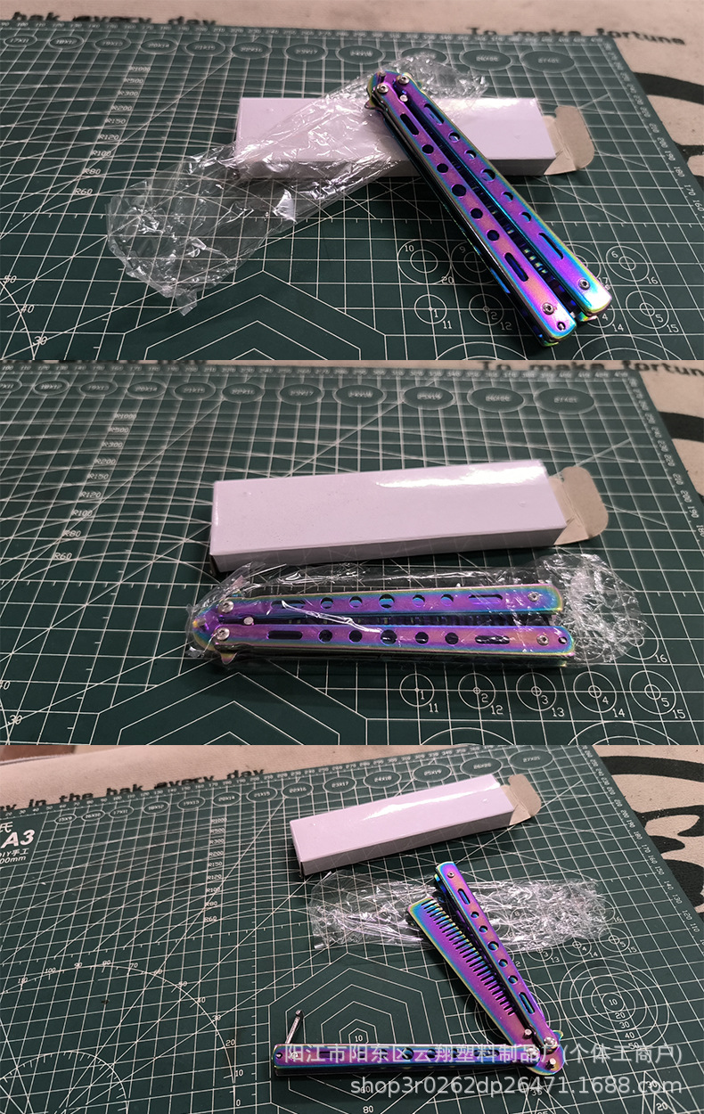 新型全鋼蝶櫛未開刃櫛練習櫛全鋼訓練刀折り畳み櫛現物