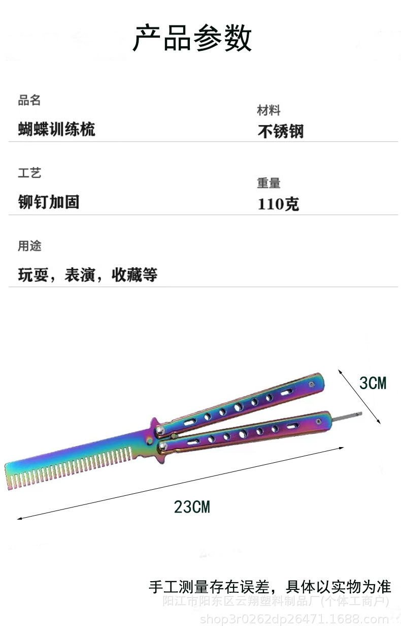 新型オールスチール製バタフライコーム 未研磨練習用コーム オールスチール製トレーニングナイフ 折りたたみコーム 現物玩具