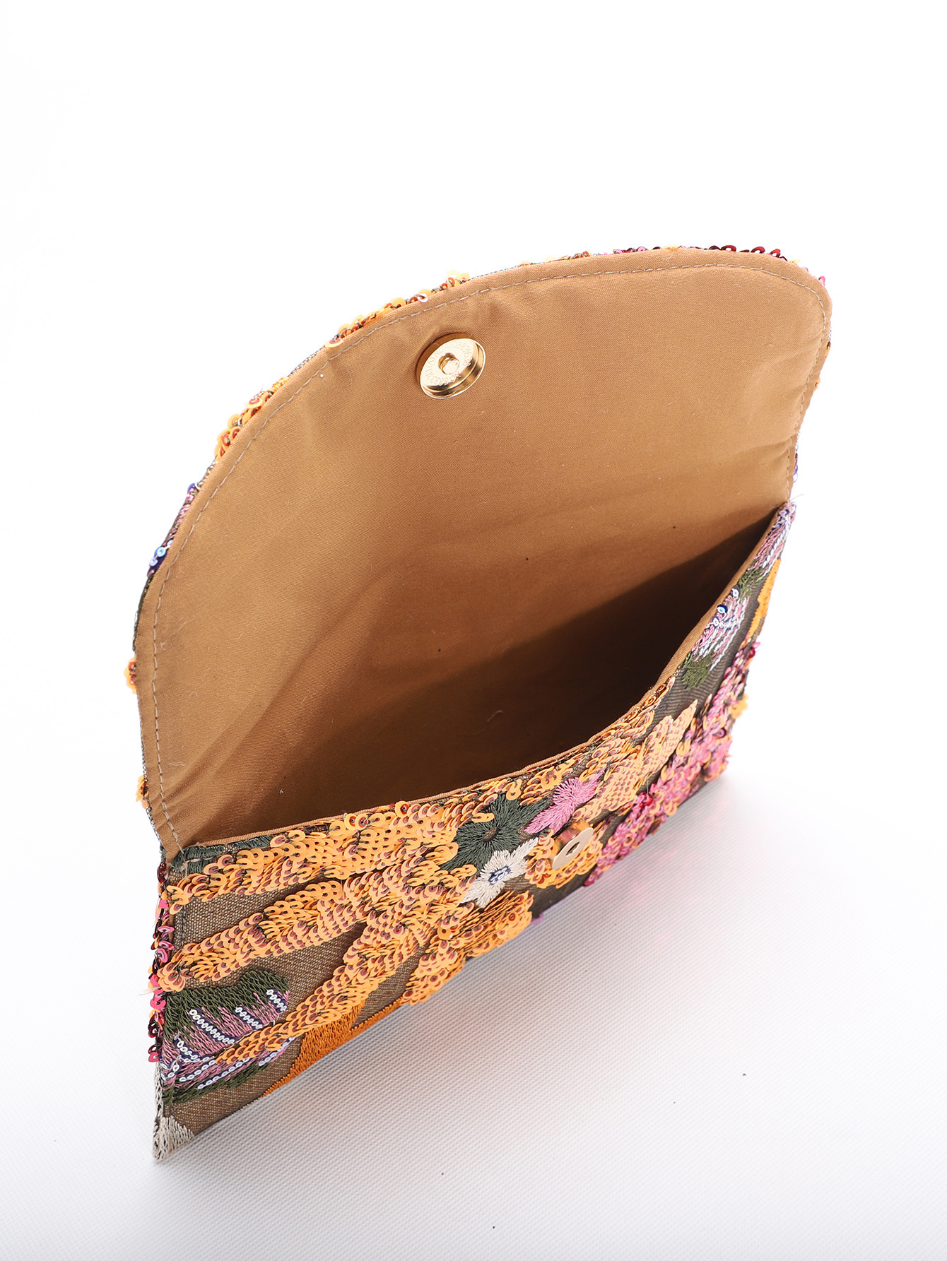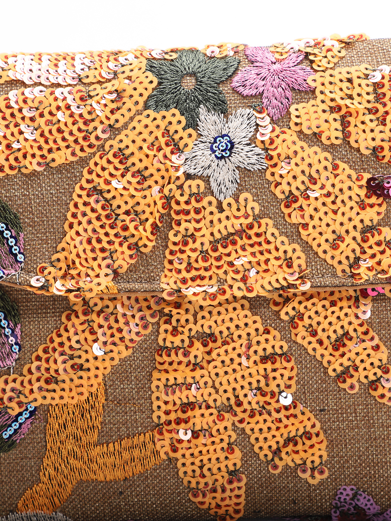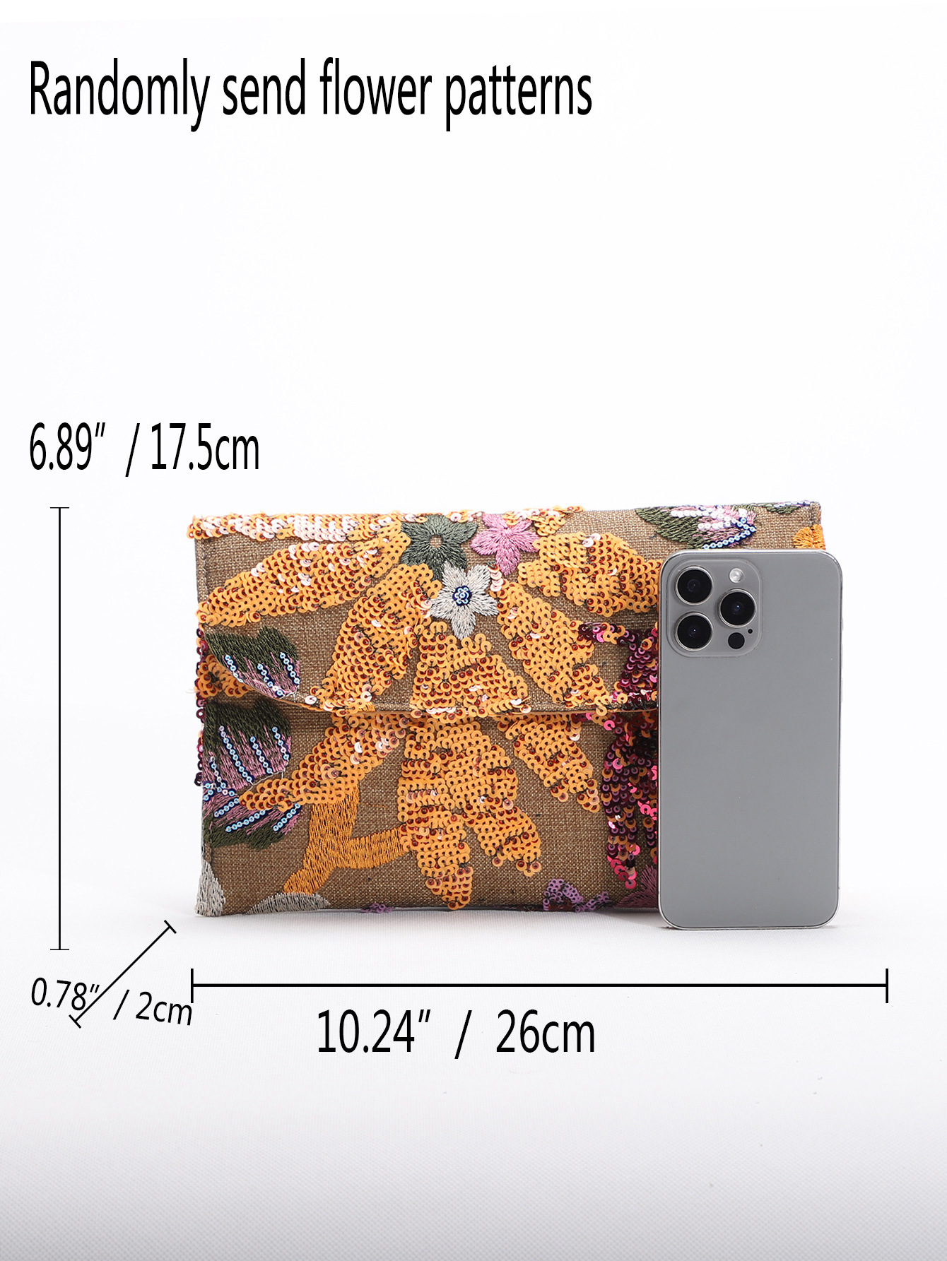 クロスボーダー高級感PVCスパンコールディナーバッグ新作花網糸刺繍カバーレターパックレディースハンドバッグ