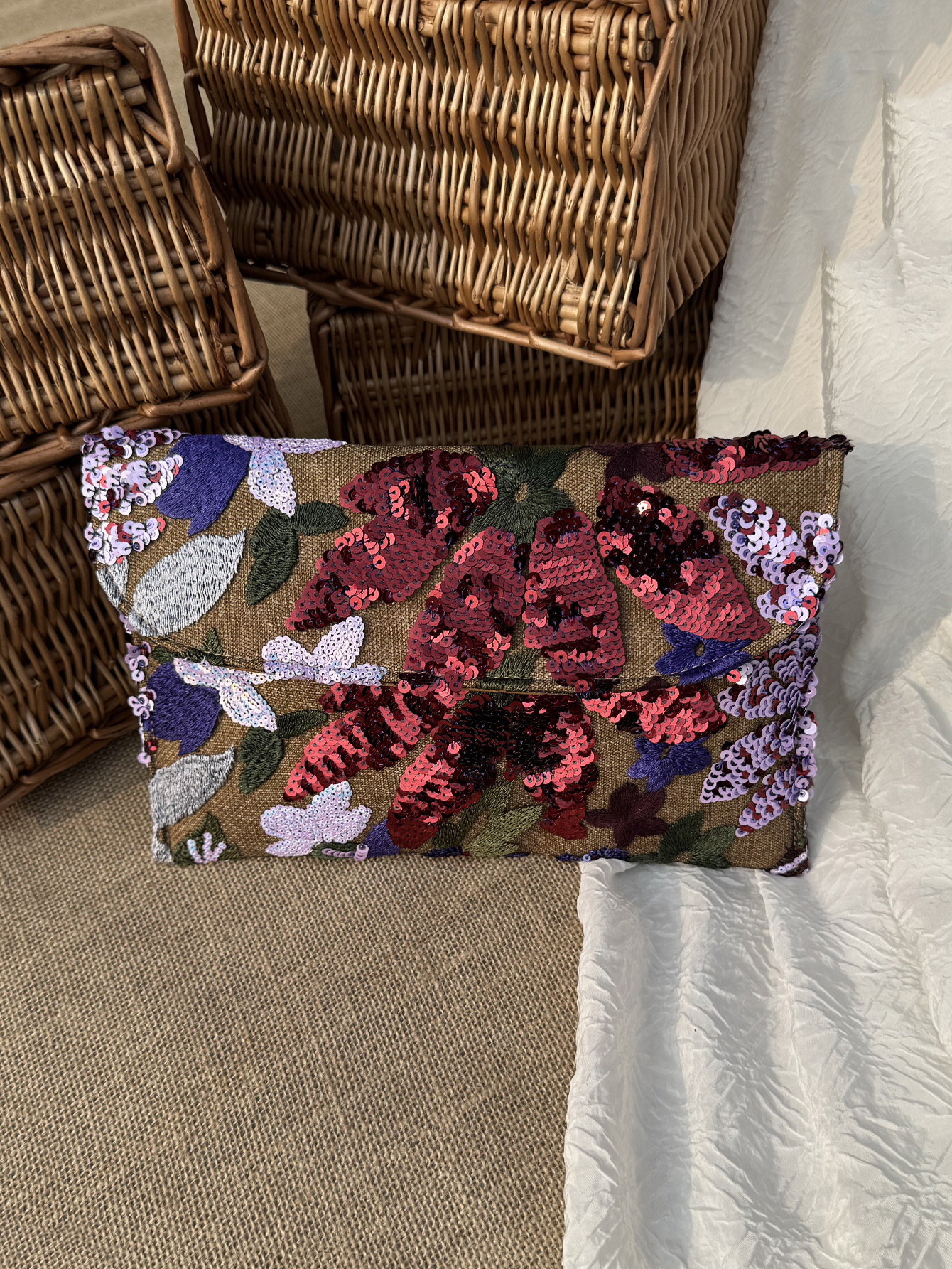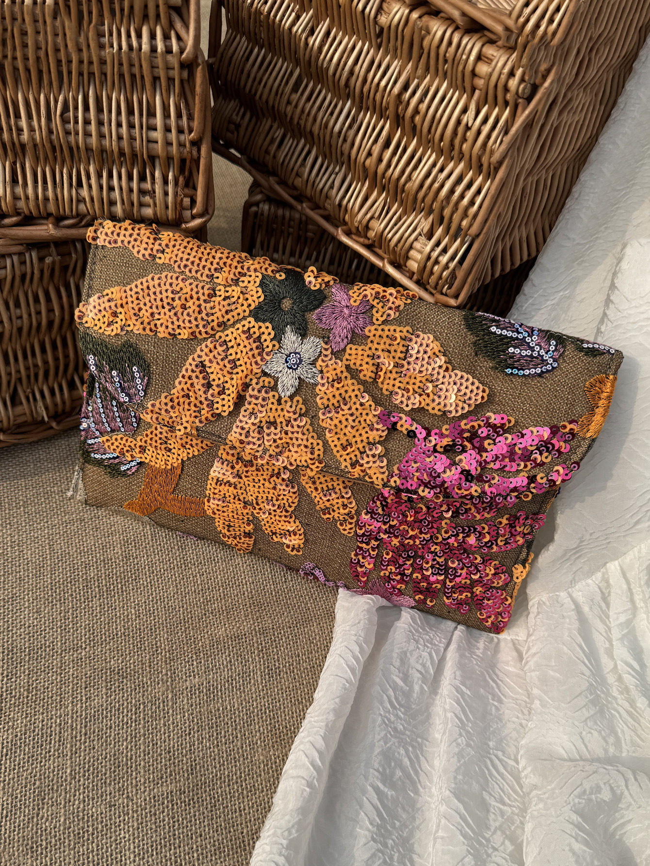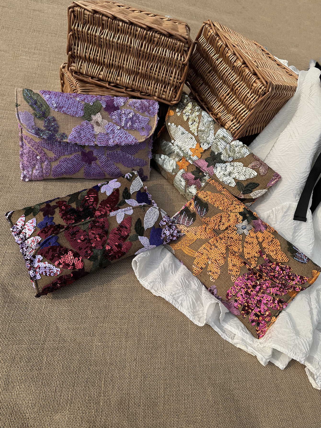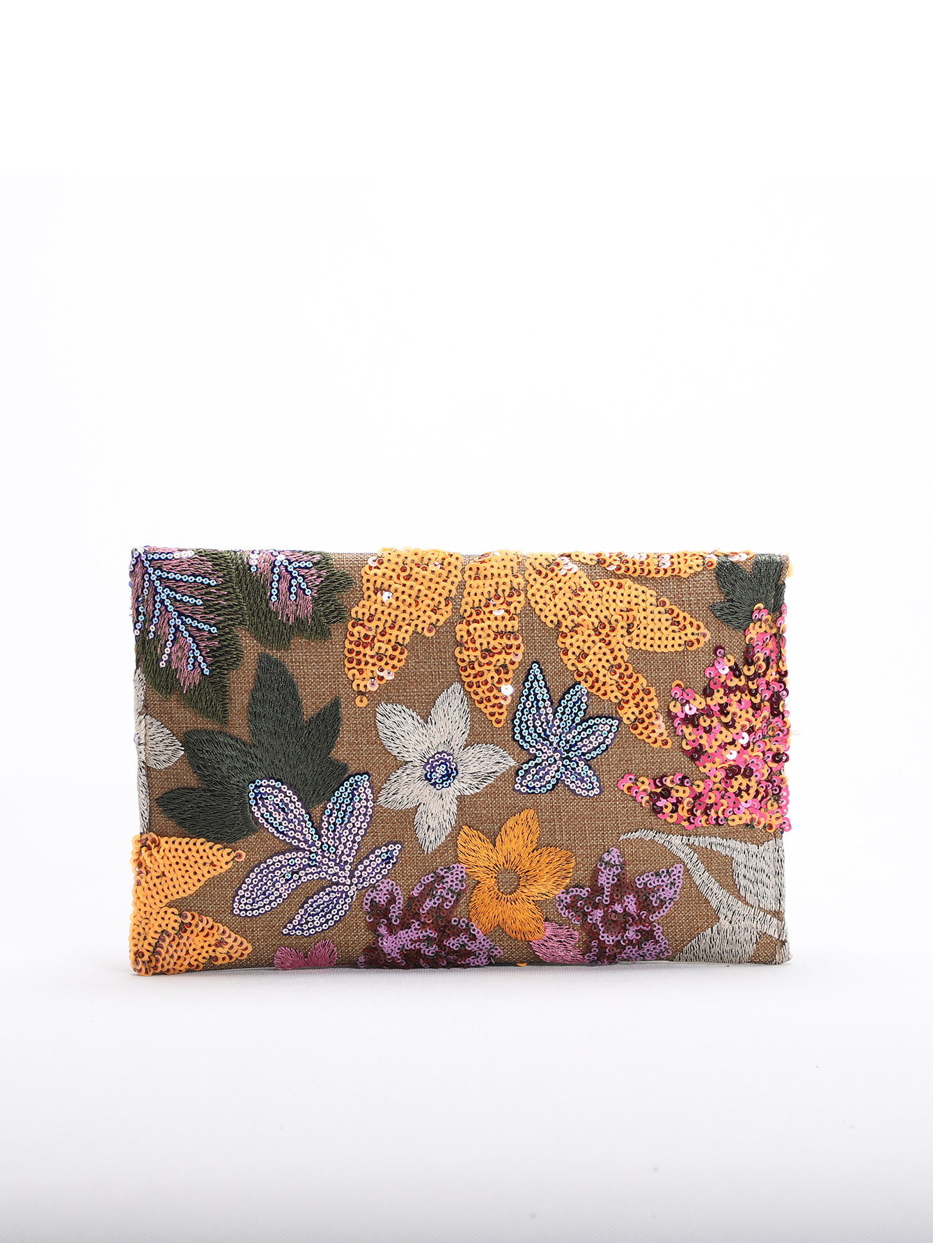 クロスボーダー高級感PVCスパンコールディナーバッグ新作花網糸刺繍カバーレターパックレディースハンドバッグ