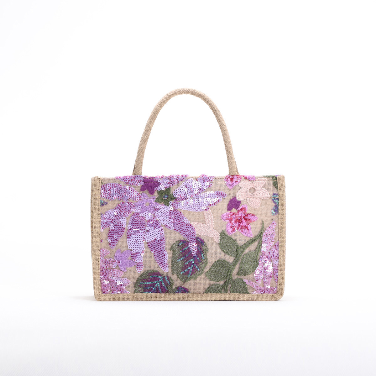 海边度假风包包女新款刺绣立体贴花亮片花朵竹节手提包优雅托特包