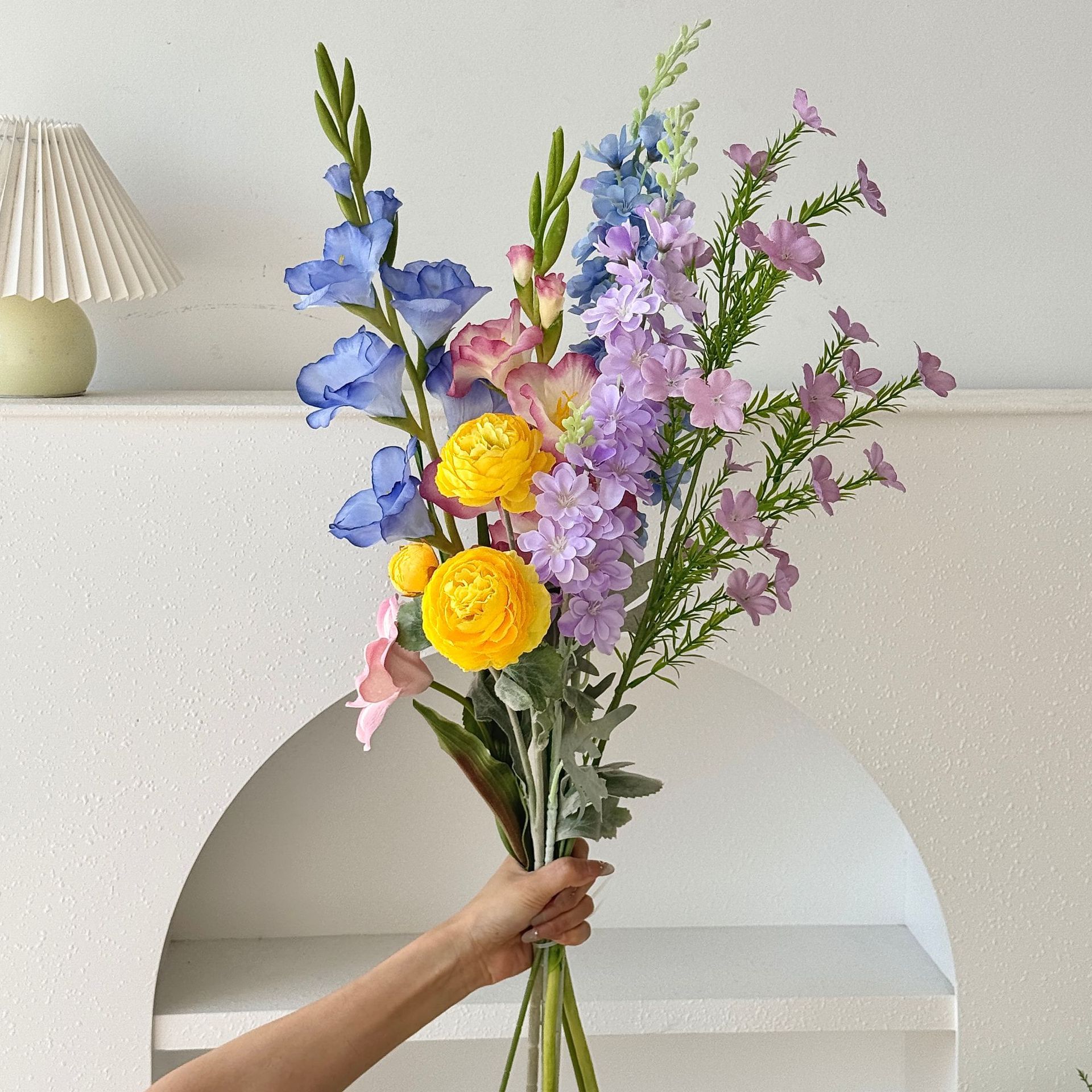 蓝色系高级感仿真花手捧花束卧室客厅餐桌装饰花艺造景家居假花