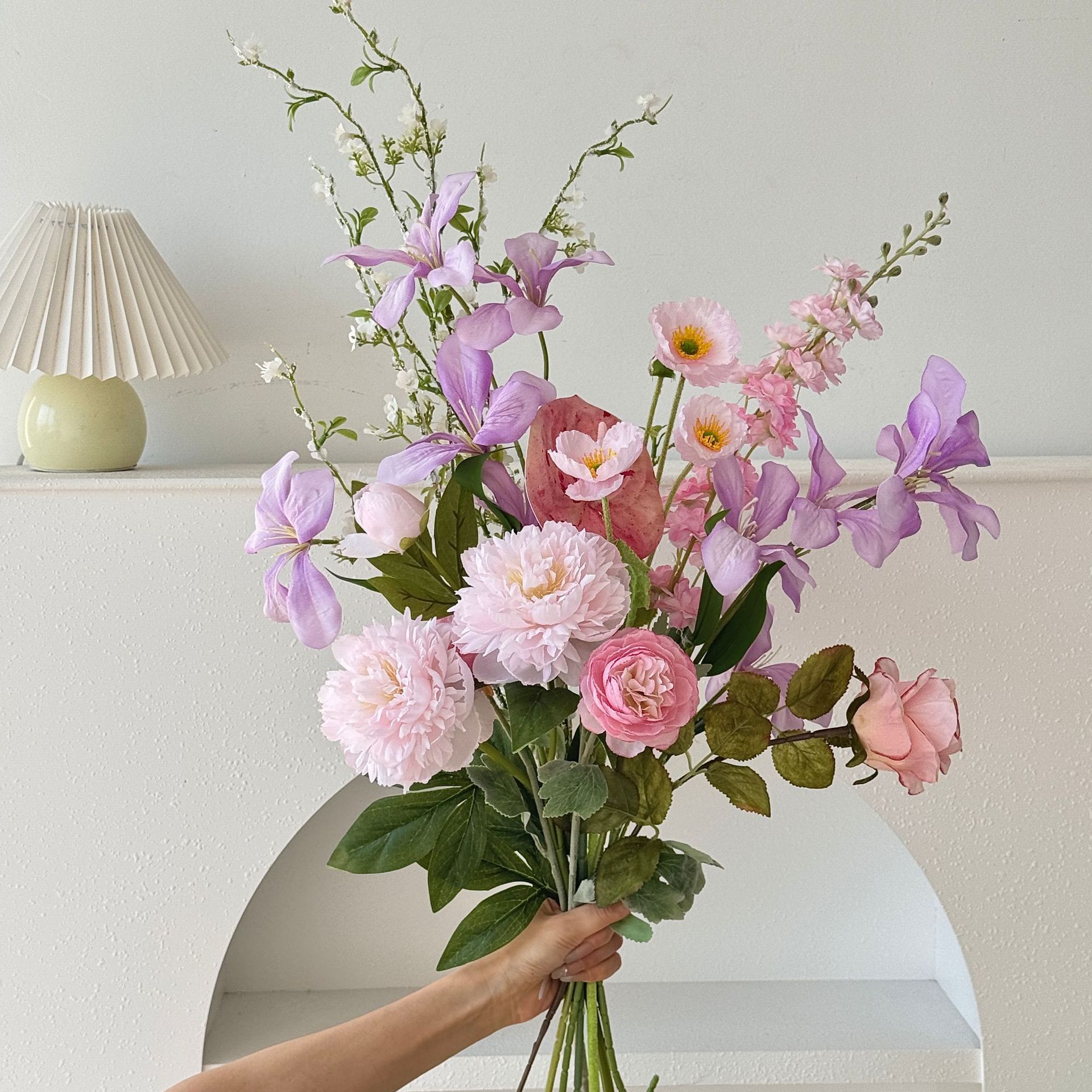 モネの花の言葉は花の森系の造花の新婦の手をシミュレーションして花の束の庭園の風の結婚式の生け花の配置は緑の植をシミュレーションします。