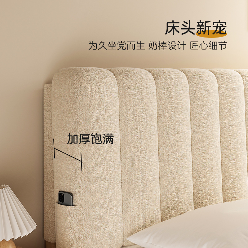 クリーム風のベッドの上に柔らかいクッションがあります。ベッドの上の背もたれは分解して洗濯できます。