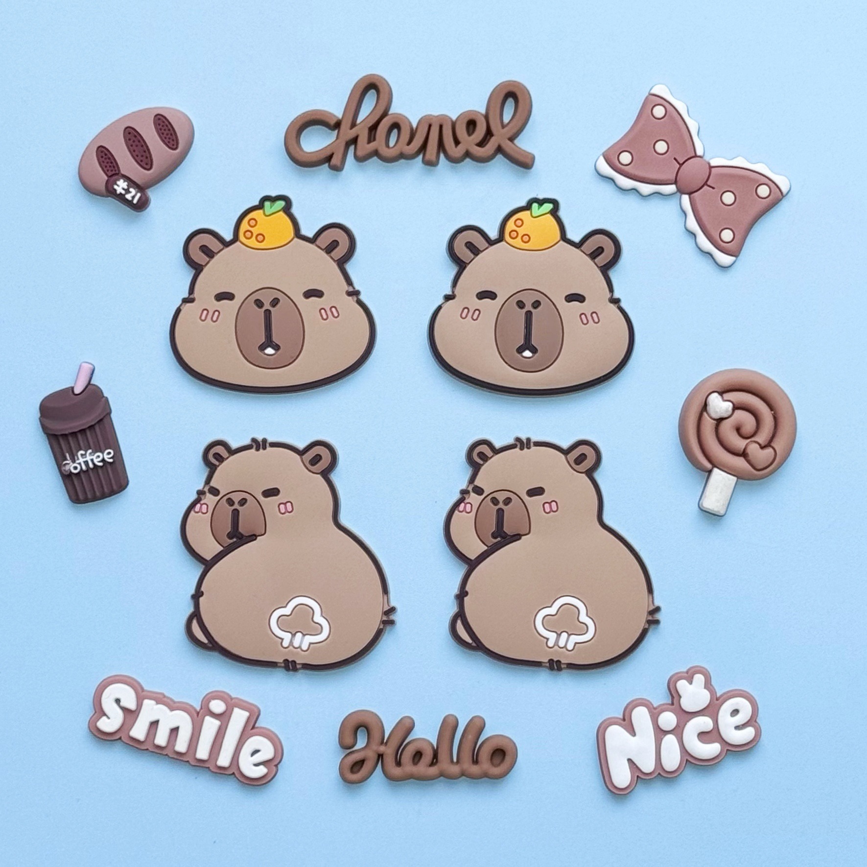 大きく細めた目(高さ6.1×幅6.4),Sサイズの目を細めた状態(高さ5.1×幅5.4),大きく開いた目(高さ6.0×幅7.7),目が開いた状態のSサイズ(高さ5.1×幅6.4),オレンジ色の小さな頭(高さ4.2×幅4.3),トランペットおなら(高さ4.8×幅4.6),茶色のロリポップ(高さ3.1×幅2.3),ダークブラウンBABY(縦1.4×横2.9),ブラウンBABY(縦1.4×横2.9),ライトブラウンBABY(縦1.4×横2.9),ビスケット(縦1.9×横2.0),茶色のヤシ (高さ 1.85*幅 1.95),ライトブラウンヤシ(高さ1.85×幅1.95),ブラウンMビーンズ(縦1.5×横1.5),薄茶色のM豆(縦1.5×横1.5),茶色の水玉リボン(高さ2.3×幅3.5),卵(高さ2.15×幅2.15),ブラウンフライドポテト(縦2.2×横2.1),チョコレート(縦1.4×横1.9),茶色の太いハート(縦3.5×横3.8),カラー文字(高さ1.1×幅4.0),コーヒーカップ(縦2.2×横1.6),ブラウンコーヒーカップ(高さ2.8×幅1.5),ブラウンスマイル(高さ1.7×幅4.1),盛り上がったコーヒーカップ(高さ2.5×幅1.8),ブラウンHELLO(高さ1.1×幅3.7),YYDS (高さ 1.7*幅 2.7),茶色のパン(高さ2.6×幅1.9),茶色文字(縦2.0×横5.1)