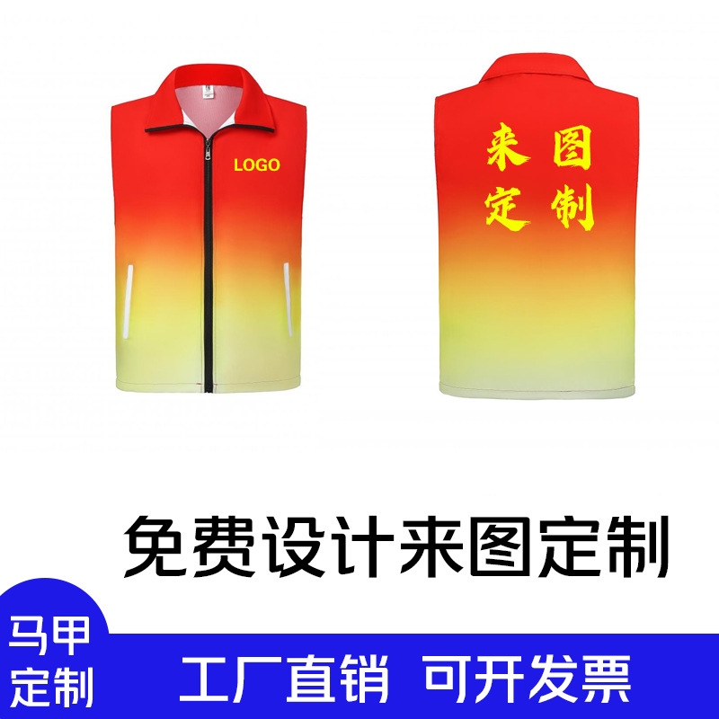 ボランティア反射馬甲双腰定スーパー活動作業服ベストポケット広告シャツ印字ロゴ安全